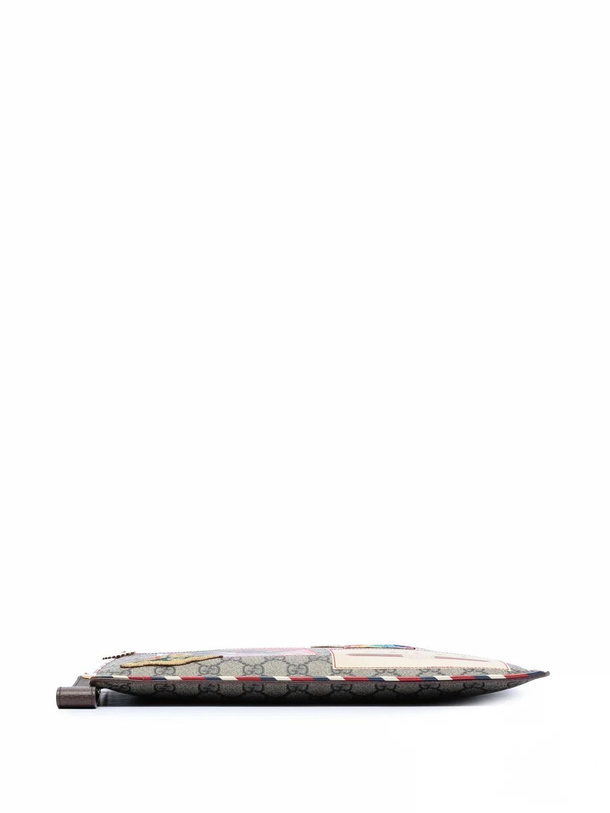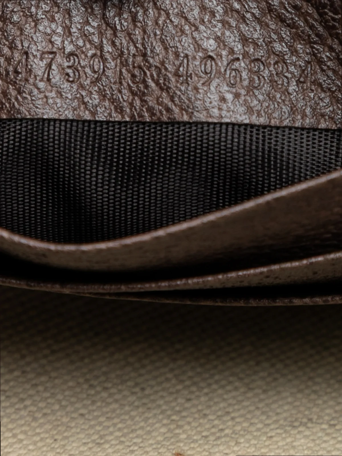 This clutch bag features a coated canvas body, a removable flat leather wrist strap, a top zip closure, and interior card slots. Brown. Serial Number: 473915 496334. This item has no inclusions. Condition: GOOD. This previously owned and used item is in good condition with minimal signs of use. This may include fading of material or plating and scratches. Please refer to the photos on this product page for a detailed view of the item, including any damages declared.