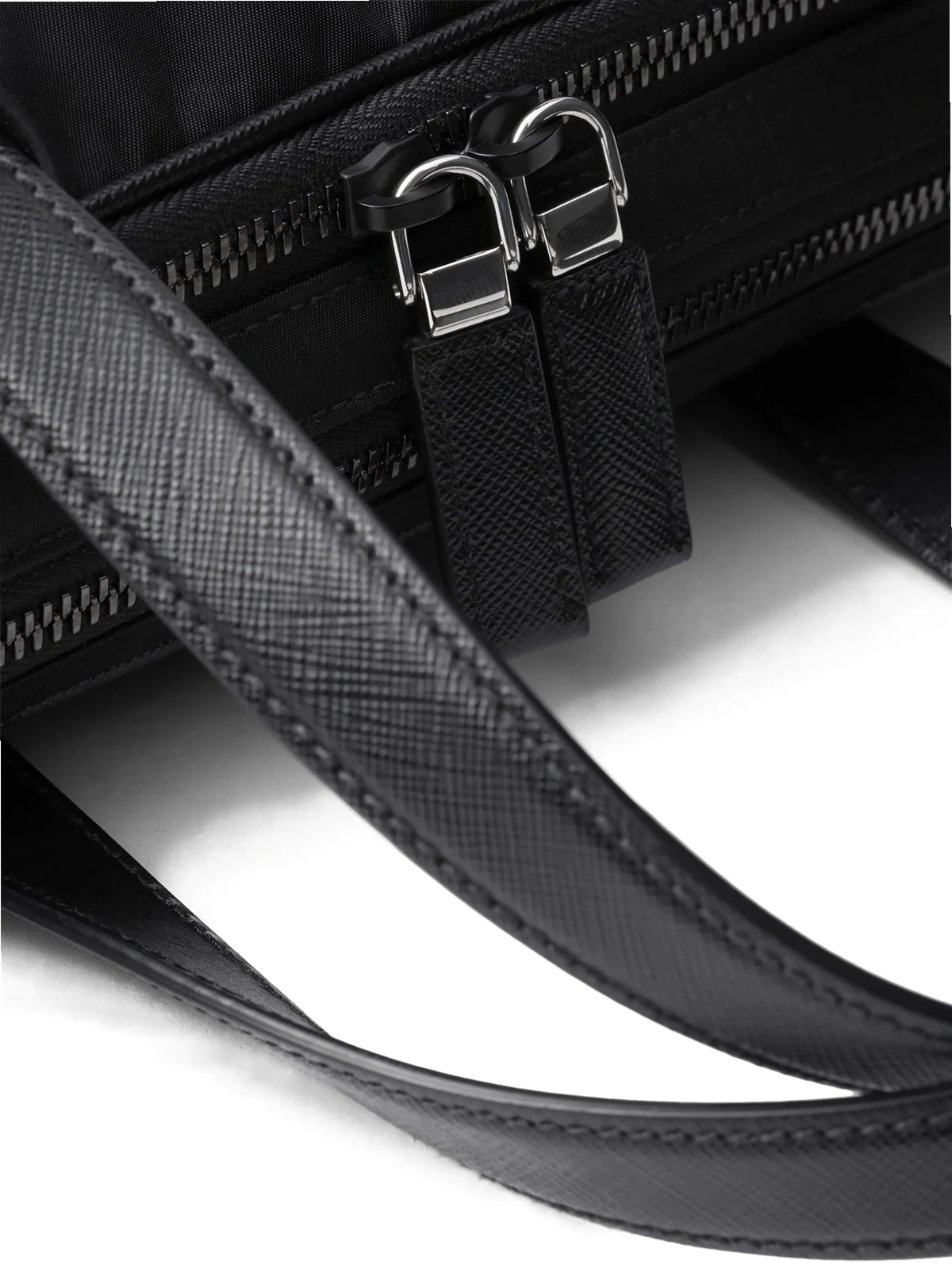 Outer: Recycled Nylon 100%, Saffiano Leather 100% Lining: Recycled Nylon 100%