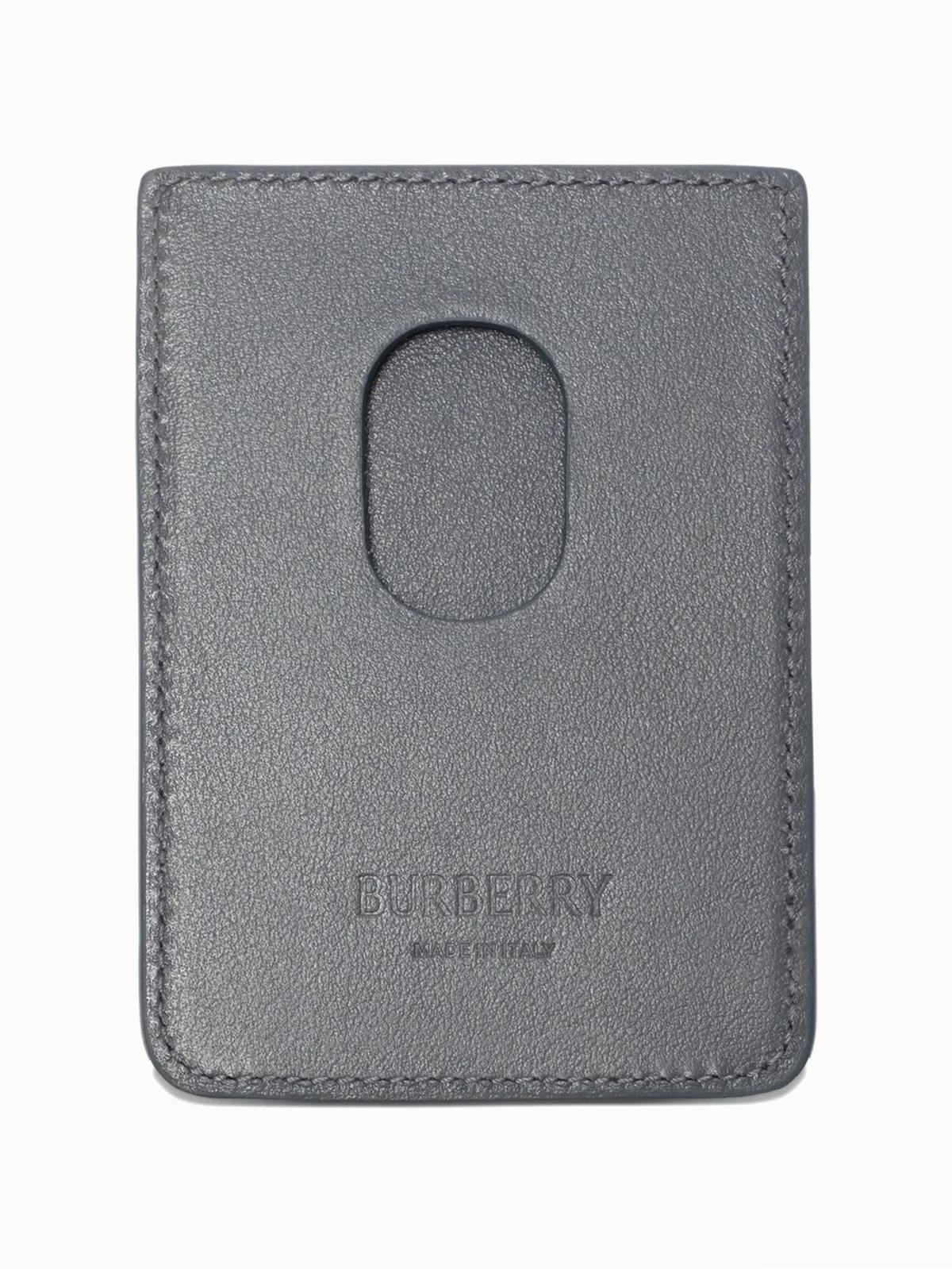 A card case made in Italy from grainy calf leather with a pop of Burberry Check in seasonal wave blue. Designed to be used with a MagSafe phone cover, the magnetic style is finished with an embossed Equestrian Knight Design.