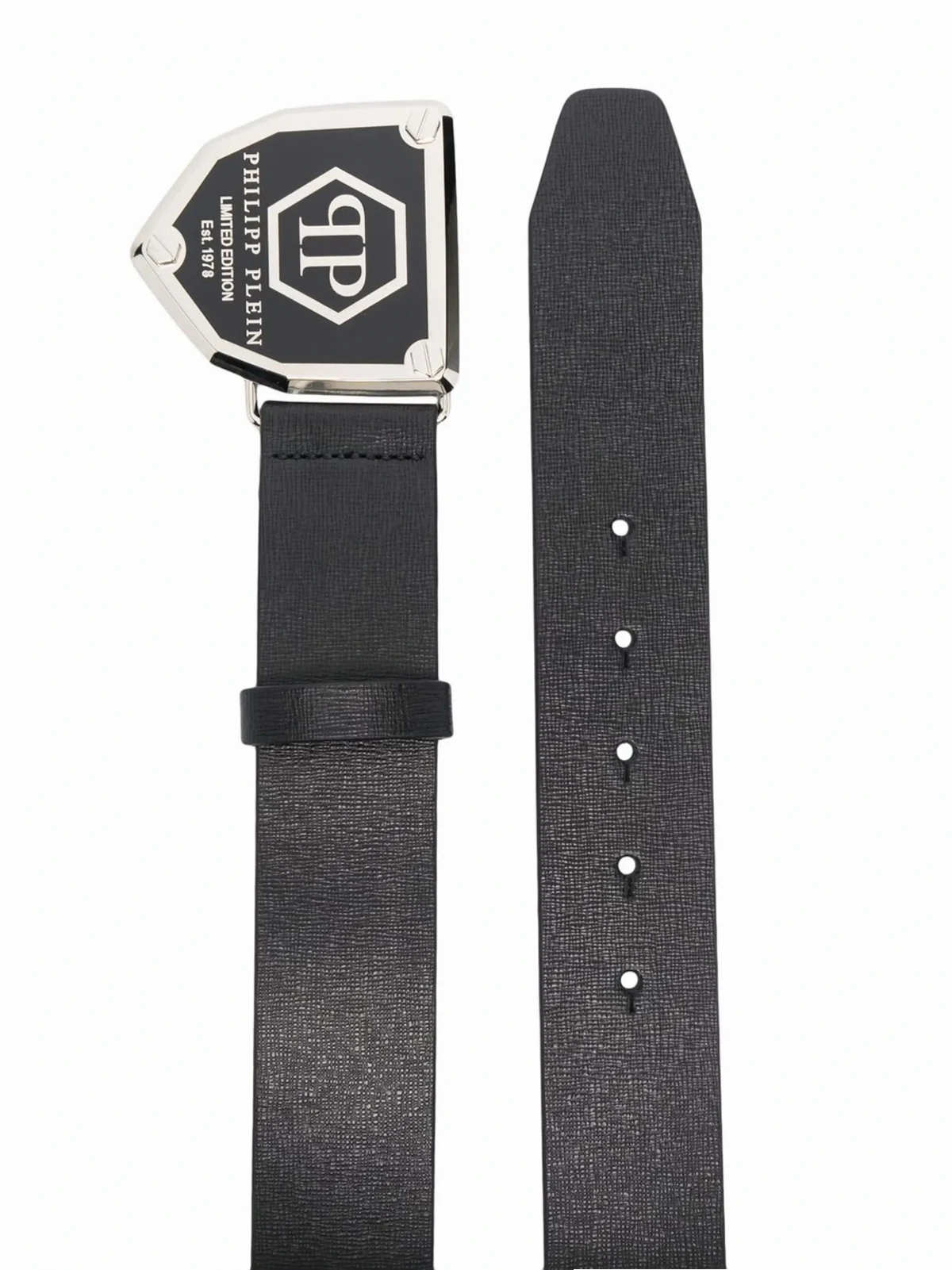 jet-black calf leather logo plaque silver-tone hardware leather strap