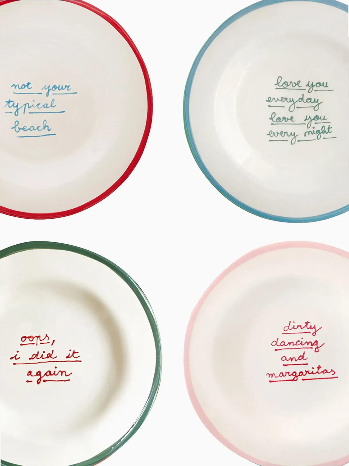I Put A Spell On You dessert plate (set of 4) from LAETITIA ROUGET featuring white/multicolour, slogan print, set of four, dishwasher safe, stoneware and 20cm x 20cm x 2cm.