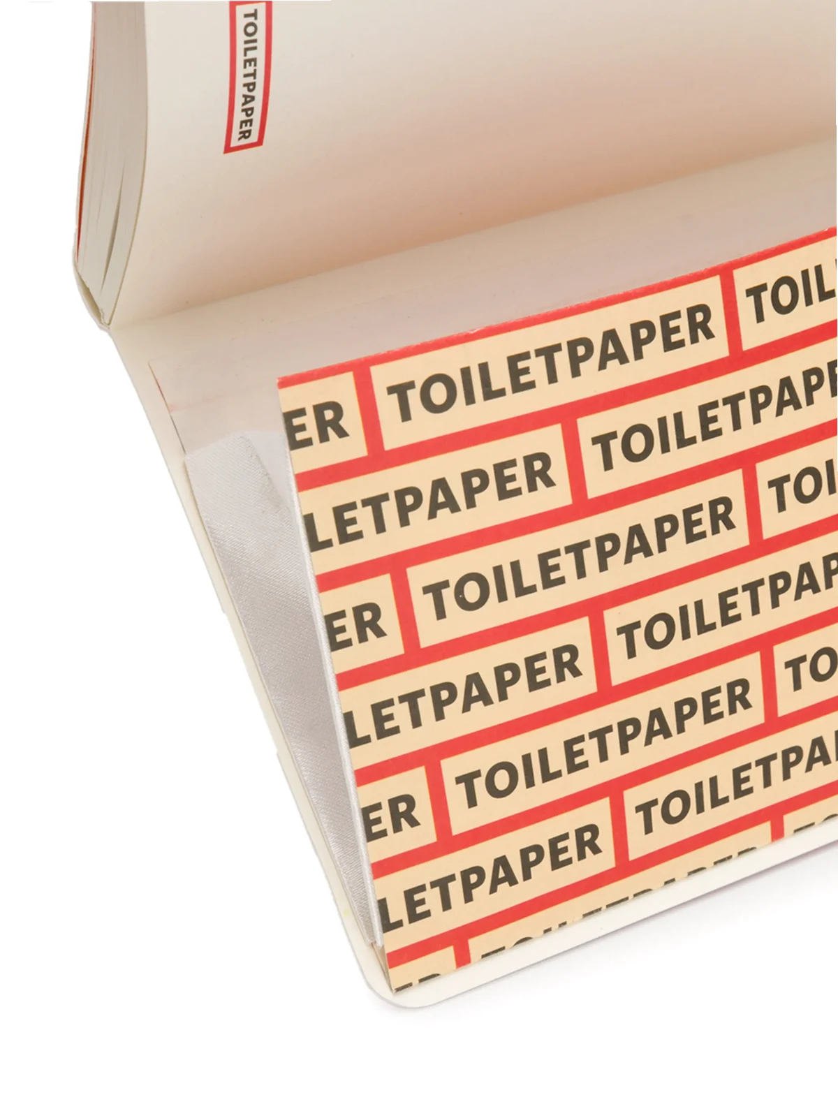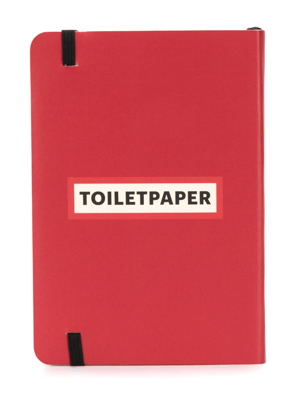 Red paper pistol-print notebook from seletti featuring a rectangular face and an elasticated fastening.