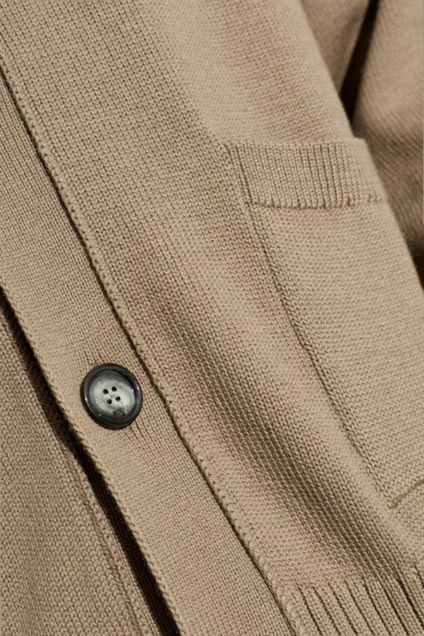 The sumptuous textured knit—meticulously spun from a premium wool-cotton blend—delivers exceptional softness and warmth. A signature heart-shaped logo with a bold ‘A’ adorns the left chest, lending a distinctive yet restrained touch emblematic of the AMI legacy. Deep-toned, matte buttons and thoughtfully placed pockets fuse practicality with style, making this seamless piece ideal for both casual and elegant moments.