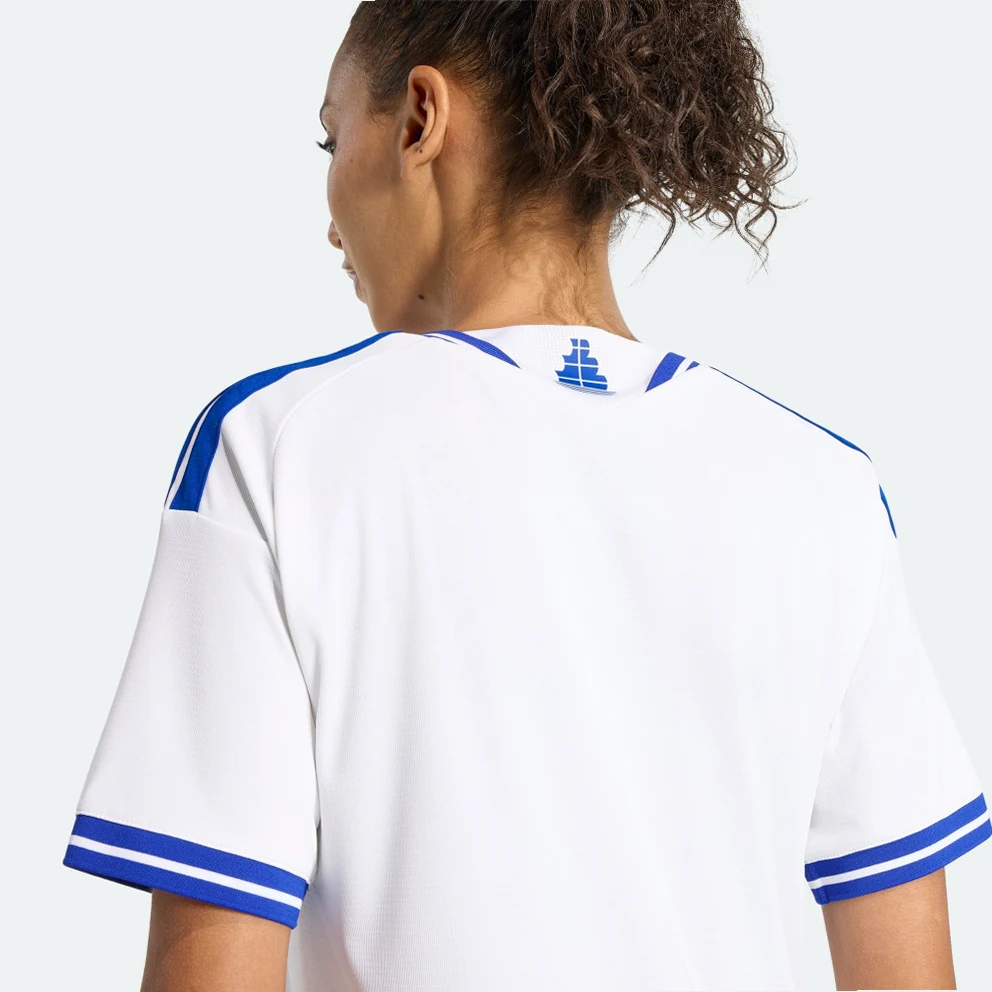 • it's a tribute to the iconic partnership between adidas and the Greek Federation, capturing the spirit of the early 2000s. The sleek design features a pirate ship sign-off, celebrating the team's nickname: The Piratikos. Crafted with Climacool technology, this jersey helps you feel cool and dry, even during the most intense matches. The bold 3-Stripes and seasonal collar add a touch of style, while the long sleeves provide extra coverage. Made with interlock fabric, it offers a comfortable fit that moves with you. Whether you're cheering from the stands or playing on the pitch, this jersey is designed to fuel your passion. Embrace the legacy and performance with adidas.