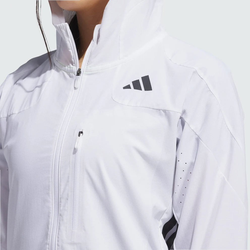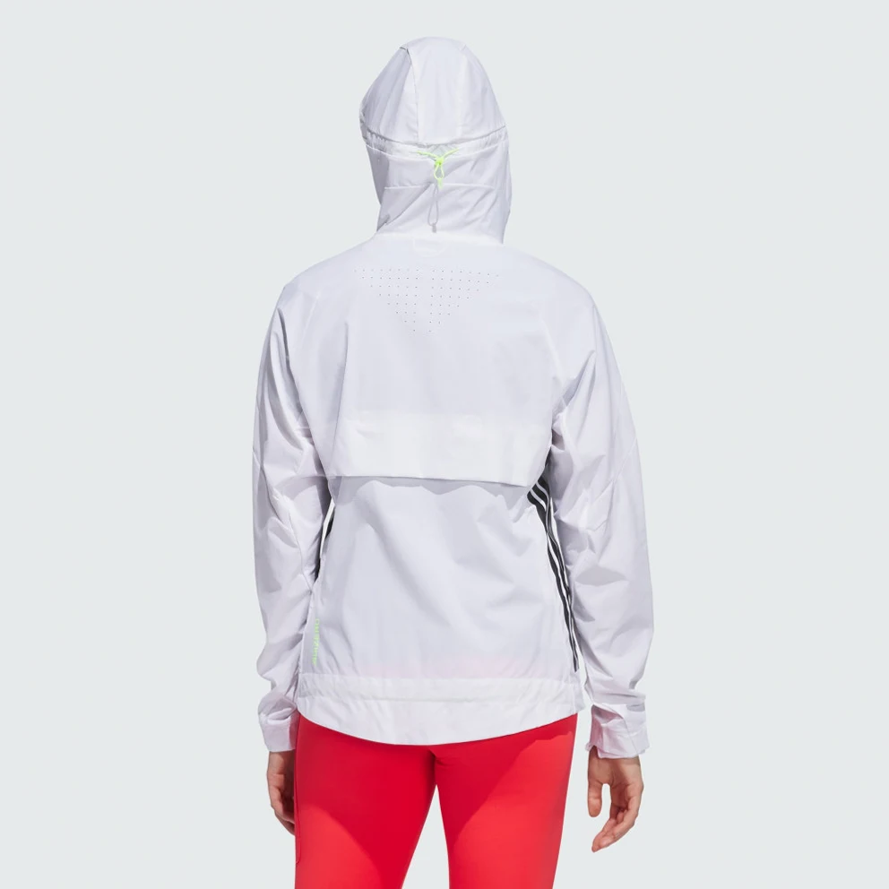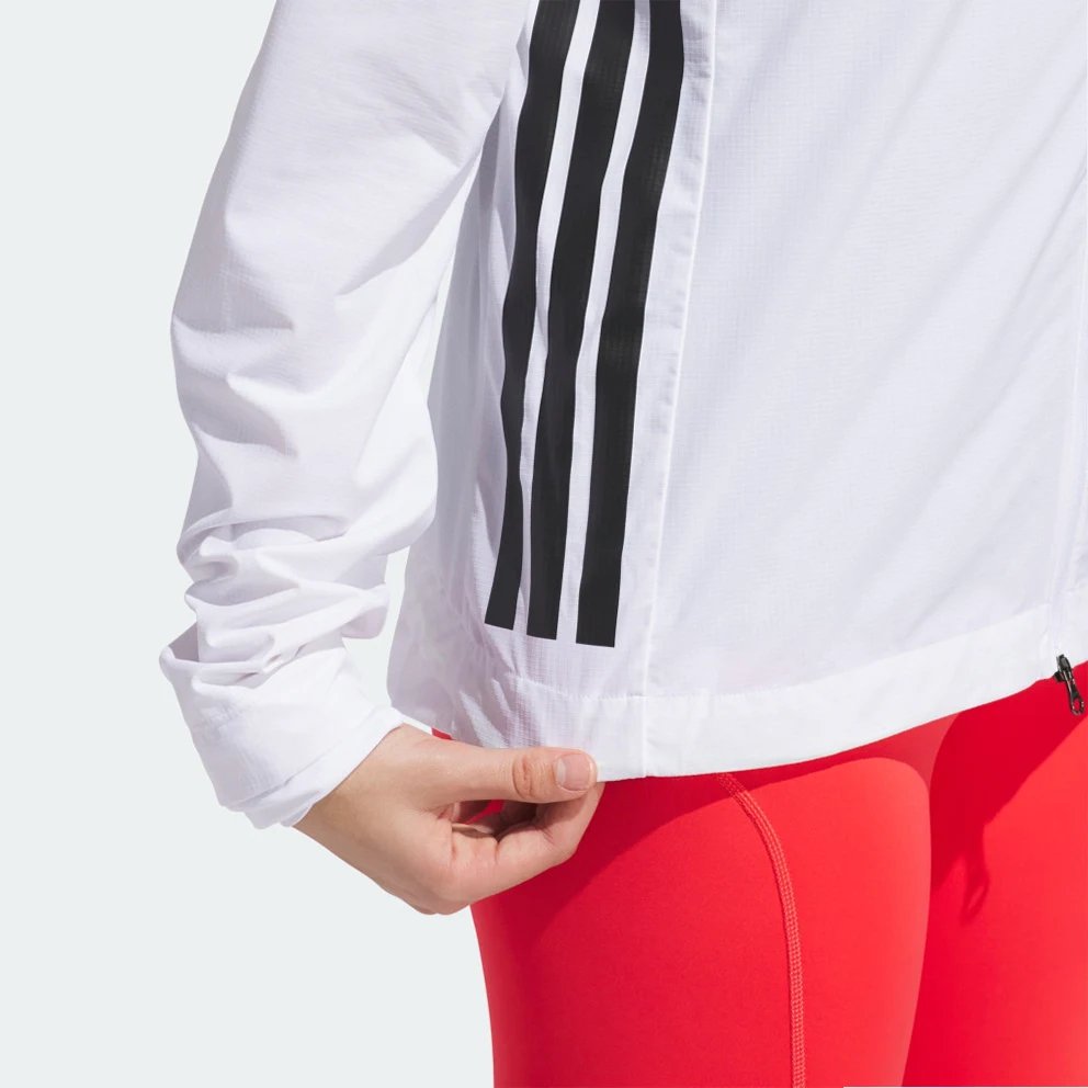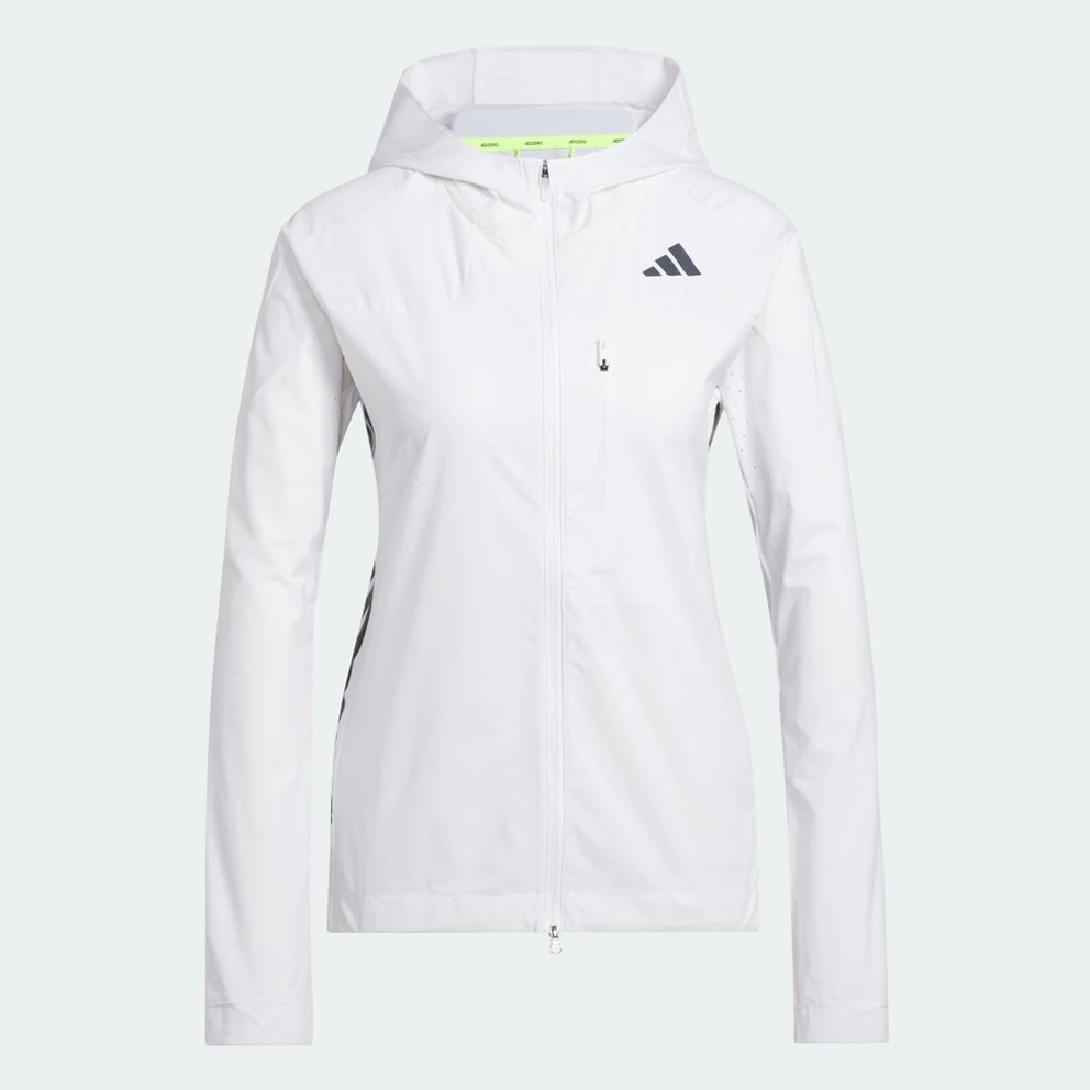 Zip up and keep training in cooler weather. With a slim, aerodynamic fit, built-in vents and wind resistance, this adidas running jacket is ready to help you make breakthroughs in your running. You can customise the fit with adjustable bungees at the hood and hem.This product is made with 100% recycled materials. By reusing materials that have already been created, adidas help to reduce waste and our reliance on finite resources and reduce the footprint of the products adidas make.