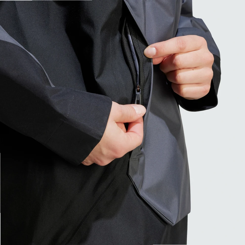 When the clouds build and rain arrives, this adidas Terrex anorak keeps you dry and comfortable. CLIMAPROOF locks out weather and helps sweat escape for dry, comfortable and unrestricted performance. The 2.5-layer construction is lighter than two or three-layer designs for a shell that stows easily in a day pack and still provides full coverage in the rain. A drawcord-adjustable hood with a visor adds coverage and zip pockets keep the small stuff secure. It's cut for a loose fit with plenty of room to move and layer.CLIMAPROOF locks out storms with waterproof materials and design to block harsh weather. Stay free from wind with wind-resistant and breathable material for extra comfort. Engineered features boost protection and breathability.This product is made with at least 70% recycled materials. By reusing materials that have already been created, adidas help to reduce waste and our reliance on finite resources and reduce the footprint of the products adidas make.