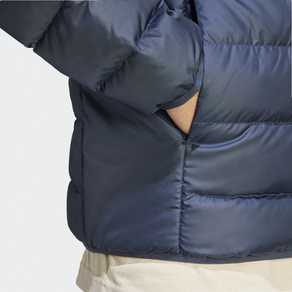 Upgrade your casual style with this down, water-repellent jacket. It is made from at least 70% recycled materials materials and the down insulation gives you the warmth you need. It has adjustable coverage at the stand-up collar as well as at the front button pockets to store your small items.