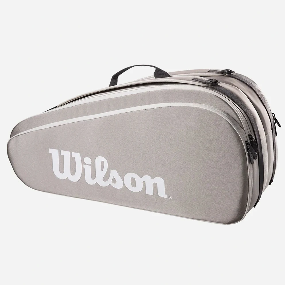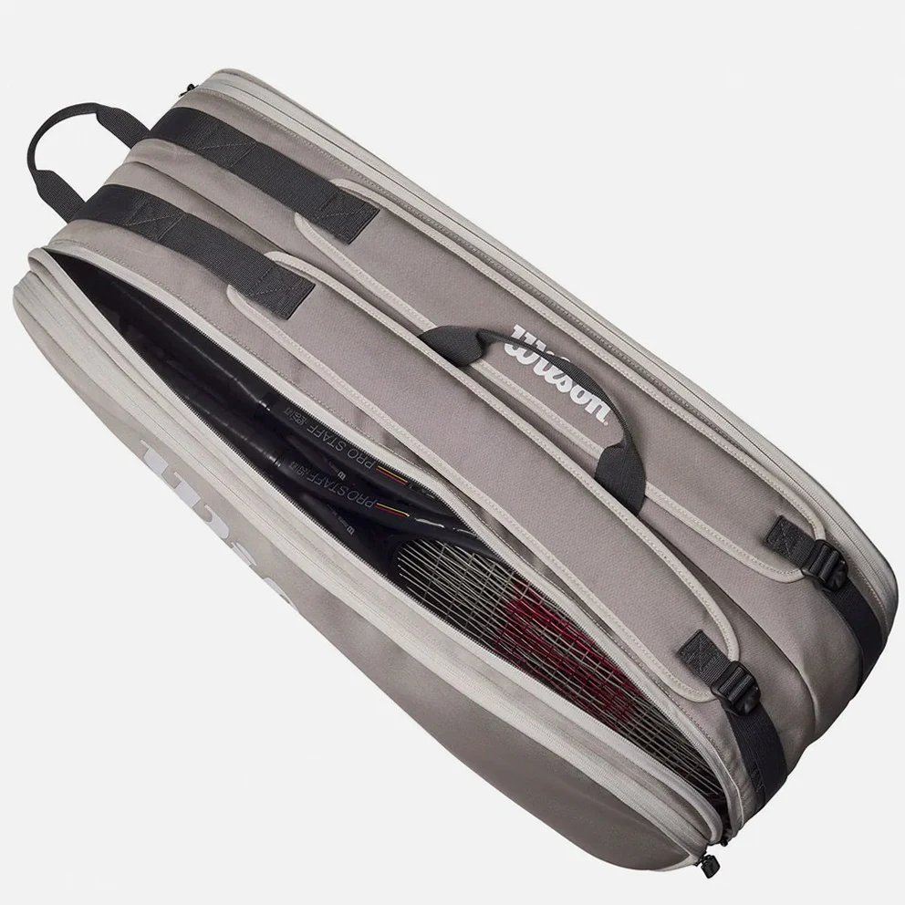 • Two main racquet cases hold up to 6 racquets and extra gear