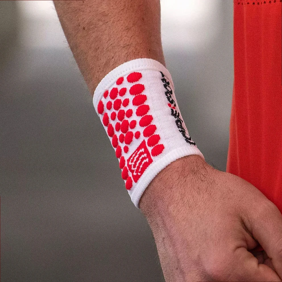In order not to worry about the moisture produced during exercise, look for the compressive and dry feeling offered by an extremely absorbent wristband such as COMPRESSPORT 3D.Dots. Built to provide support to your wrist and absorbency with quick-drying fibers thanks to the elastic synthetic material becomes one with your wrist, freeing you from annoying chafing. Suitable for all your sports activities that require intense movement.