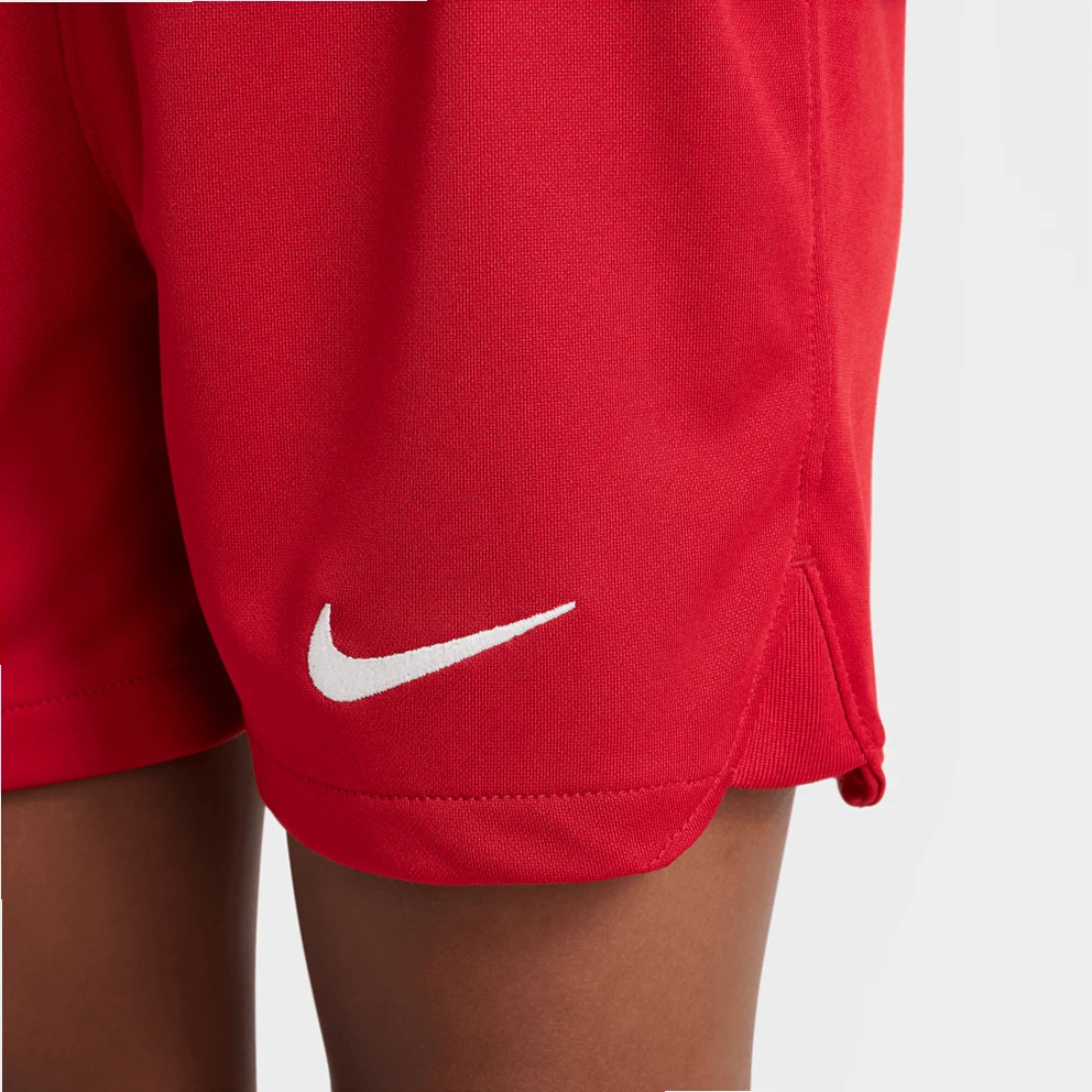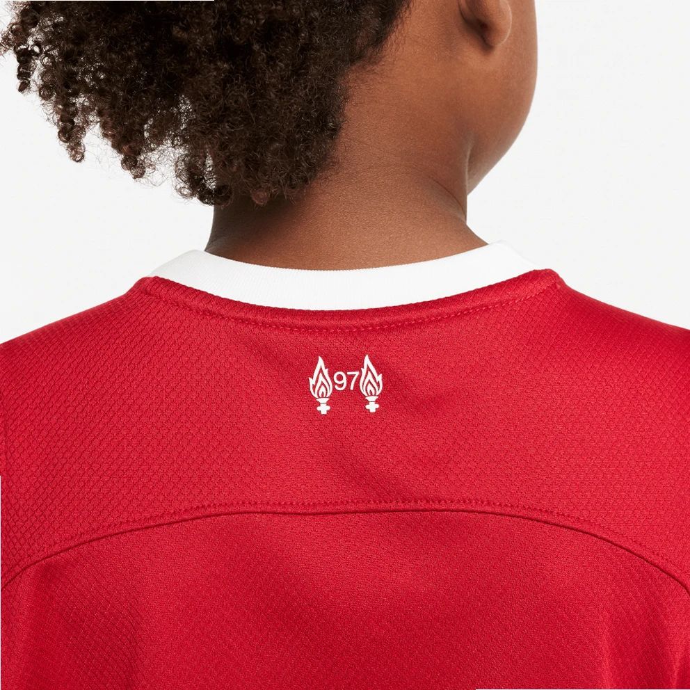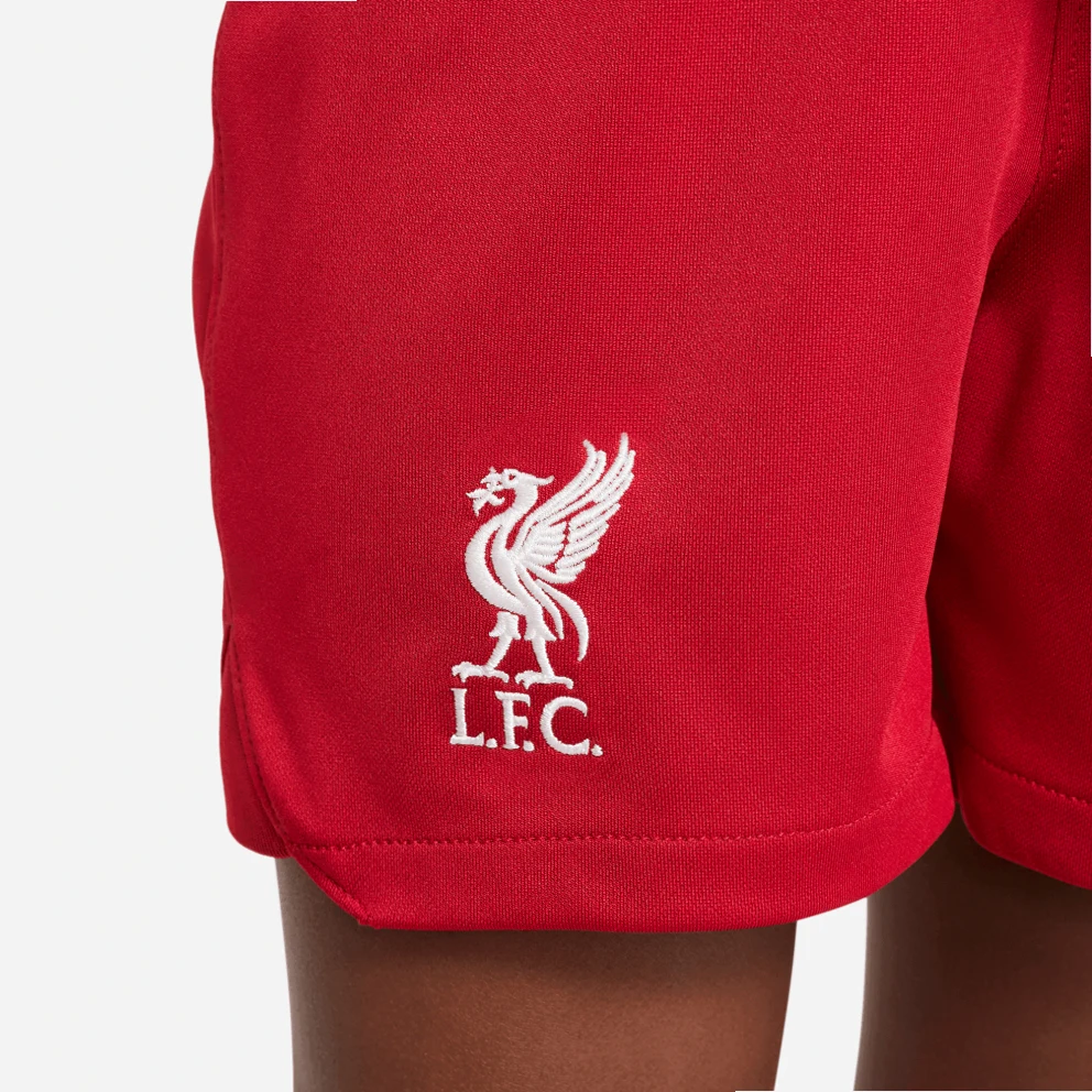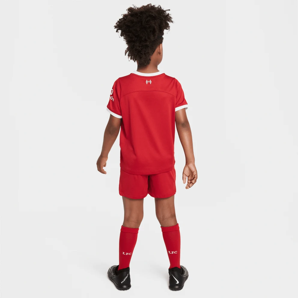 Help your little one build team spirit by choosing the Nike Liverpool FC 2023/24 Home Tracksuit Set. It consists of light shorts, a t-shirt and high football socks in the colors of the team for celebrations inside and outside the home.Wear them together or separately enjoying a variety of versatile combinations.