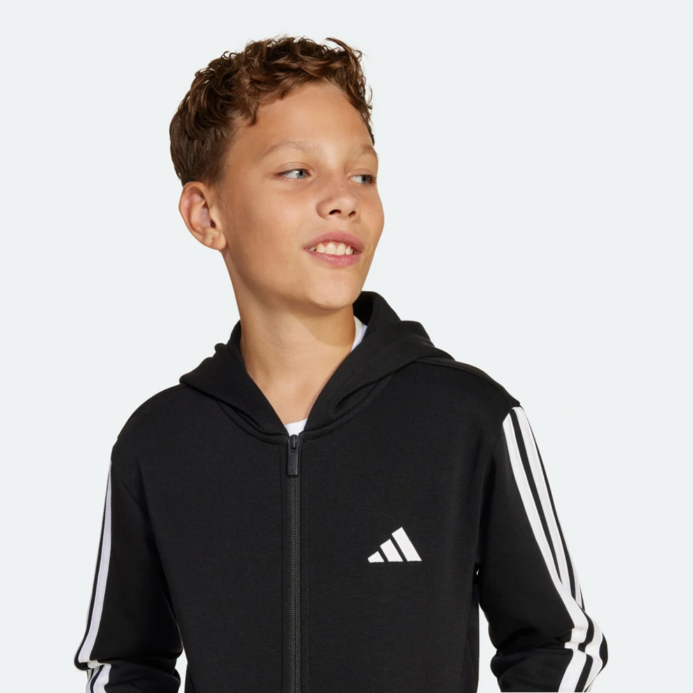 An essential layer for days on the move, this juniors' adidas hoodie is made of soft fleece to keep you comfortable wherever you go. Ribbed cuffs amp up the cosy factor and the full zip front lets you adjust the coverage as needed. Whether you're headed to school or hanging out with friends, this hoodie has you covered in sporty style and casual comfort.