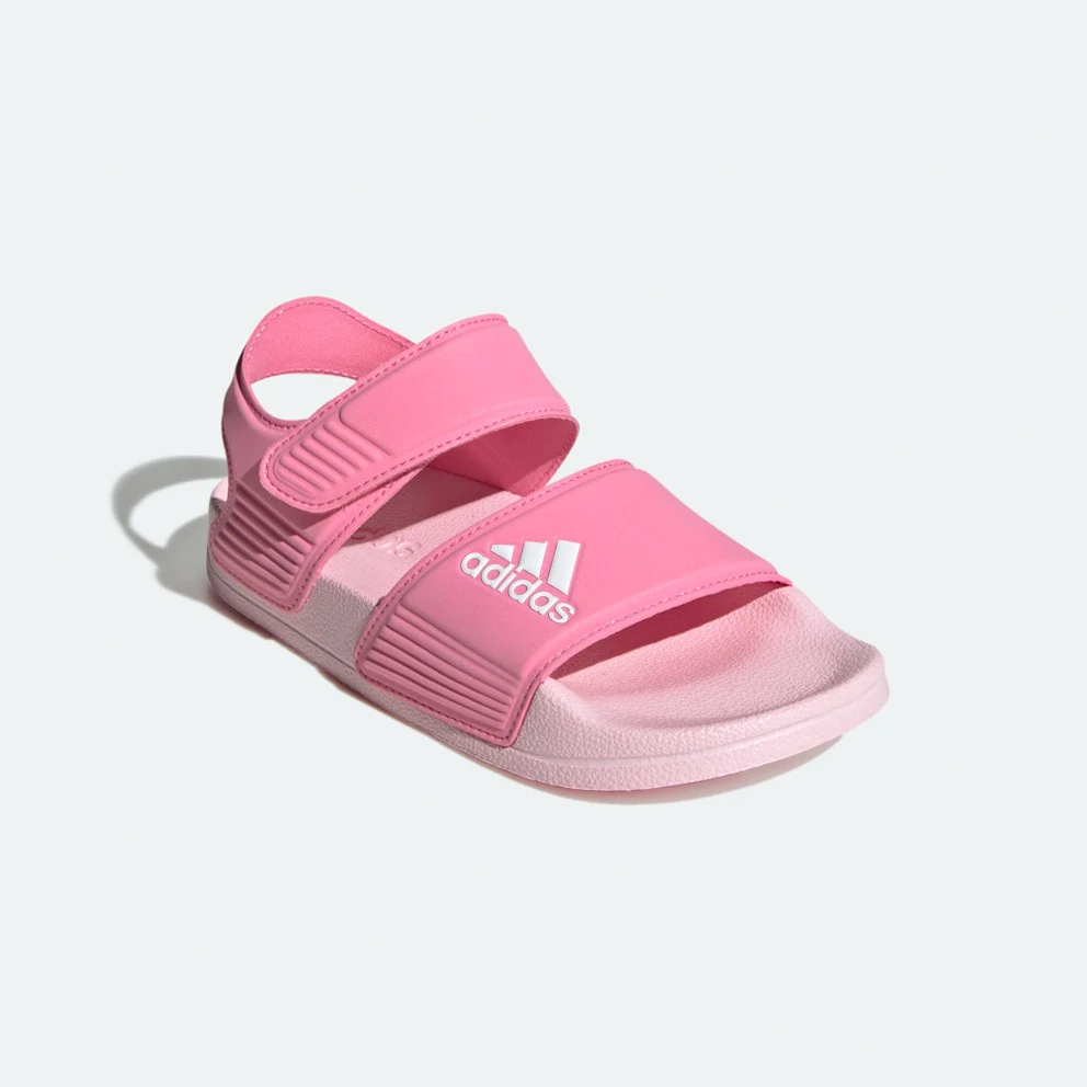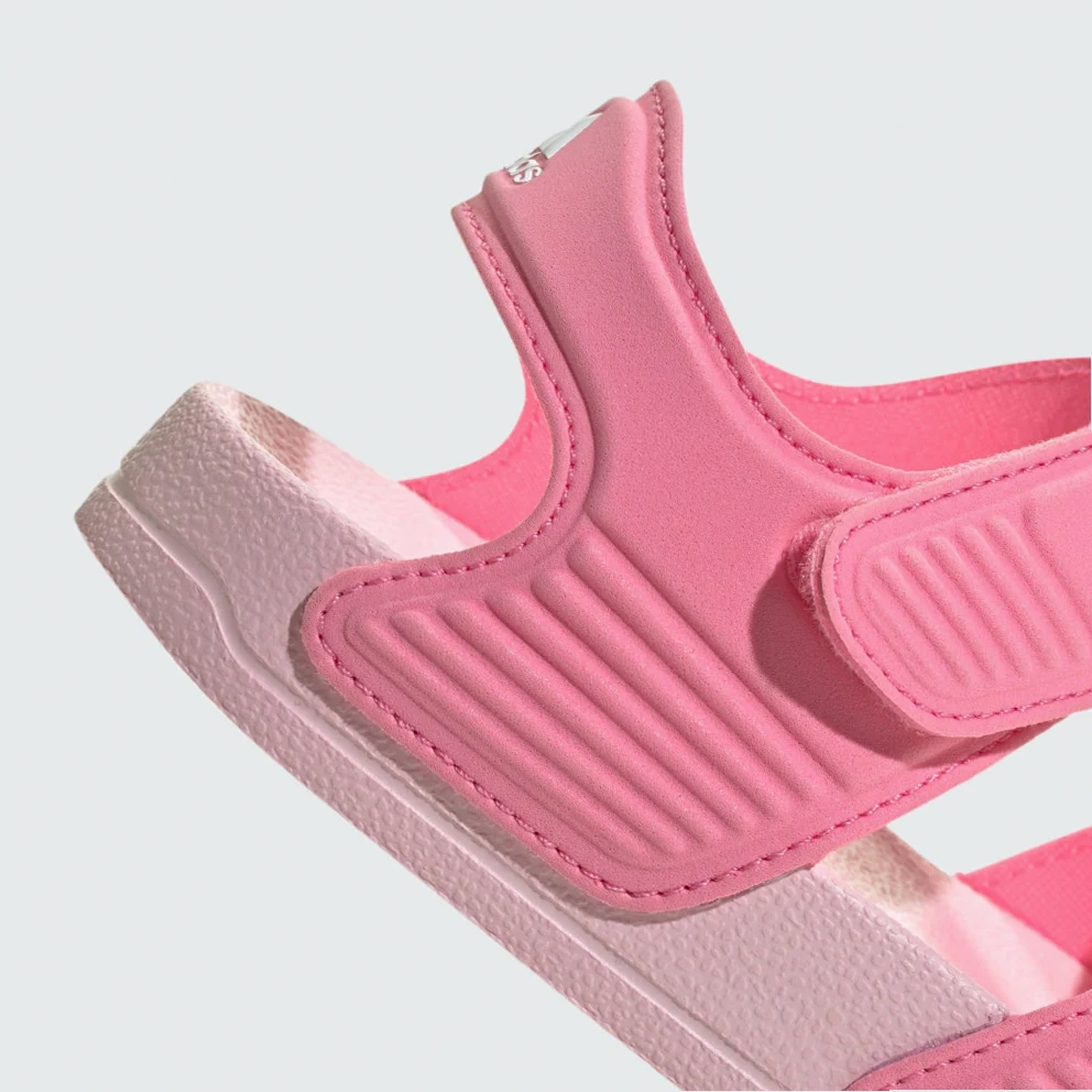 Inspired by classic Adilette slides, these kids' adidas sandals are perfect for sunny days of play in and out of the water. A hook-and-loop strap creates an easy on and off. The quick-drying upper lets them play in comfort until they're back on dry land.