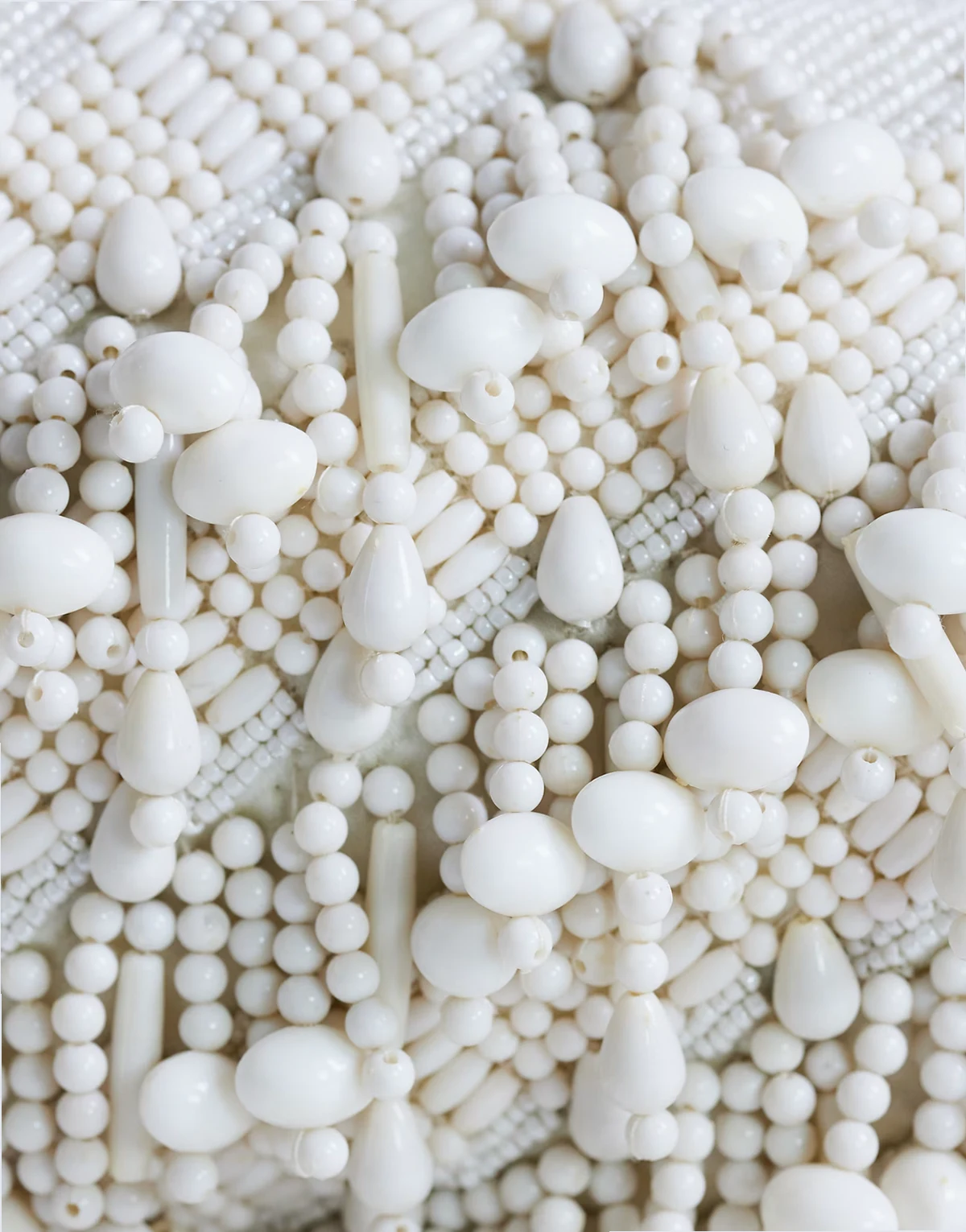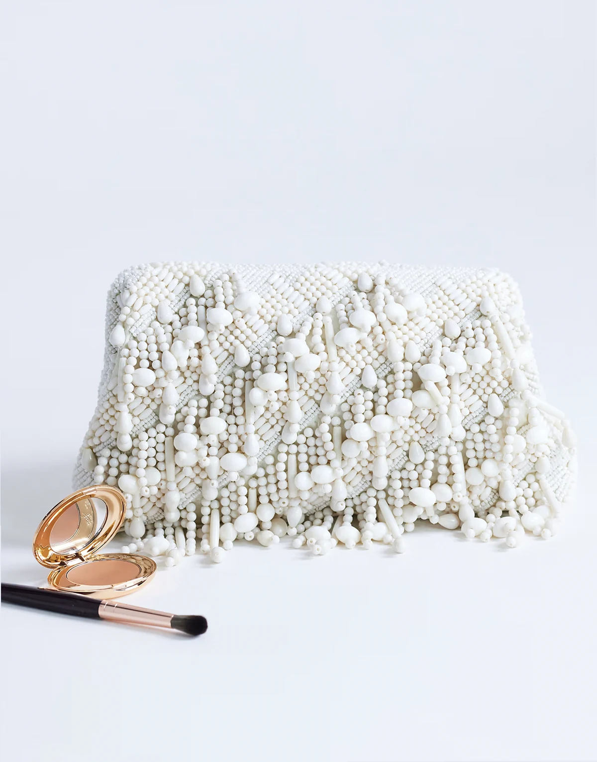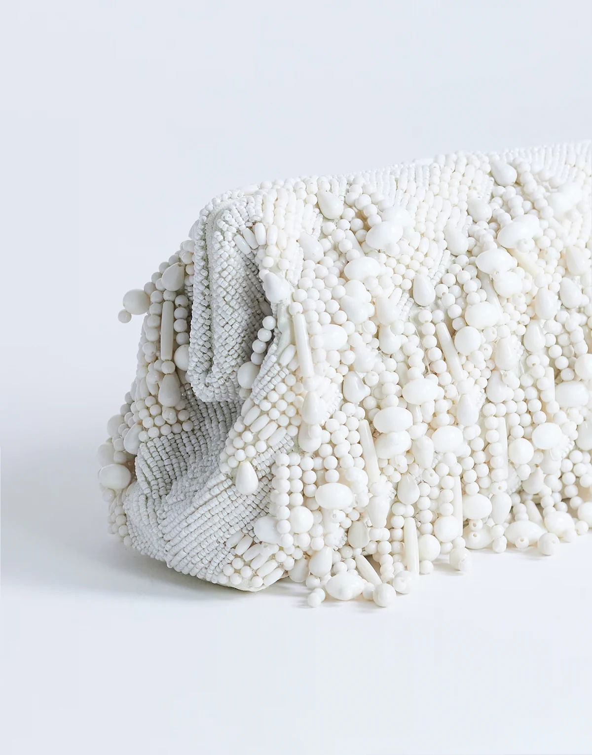 The Garison clutch bag comes in a rectangular grab style. With an embellished finish, this style features a mix of beads in shades of white. Fasten it via the snap closure. Styled with other products. Each item sold separately.