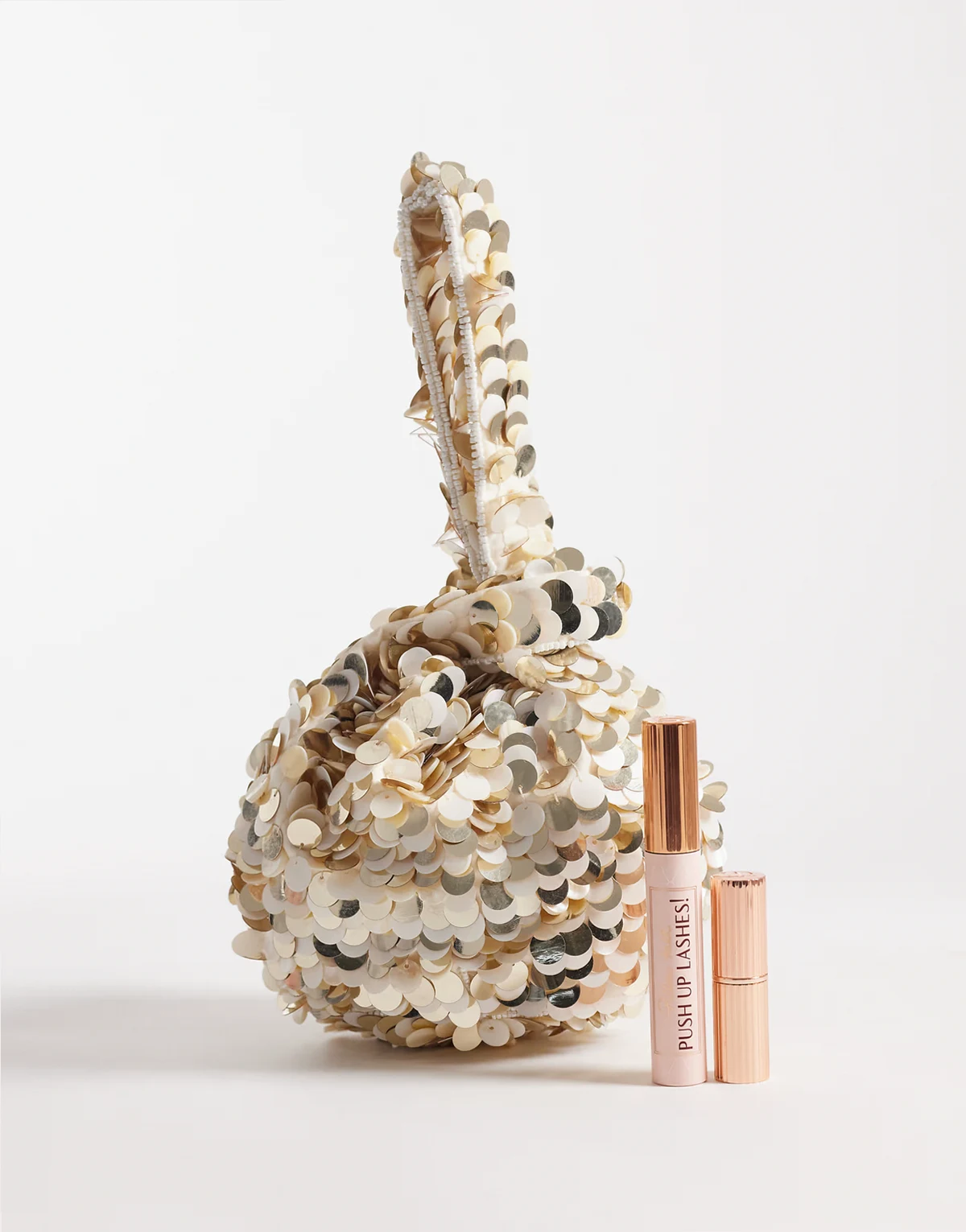 Pearl Crush Vanity Case with Chain Quilted Denim Mini clutch bag