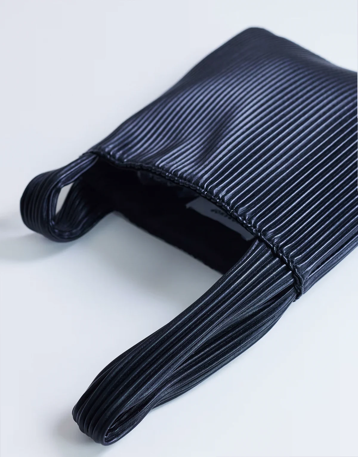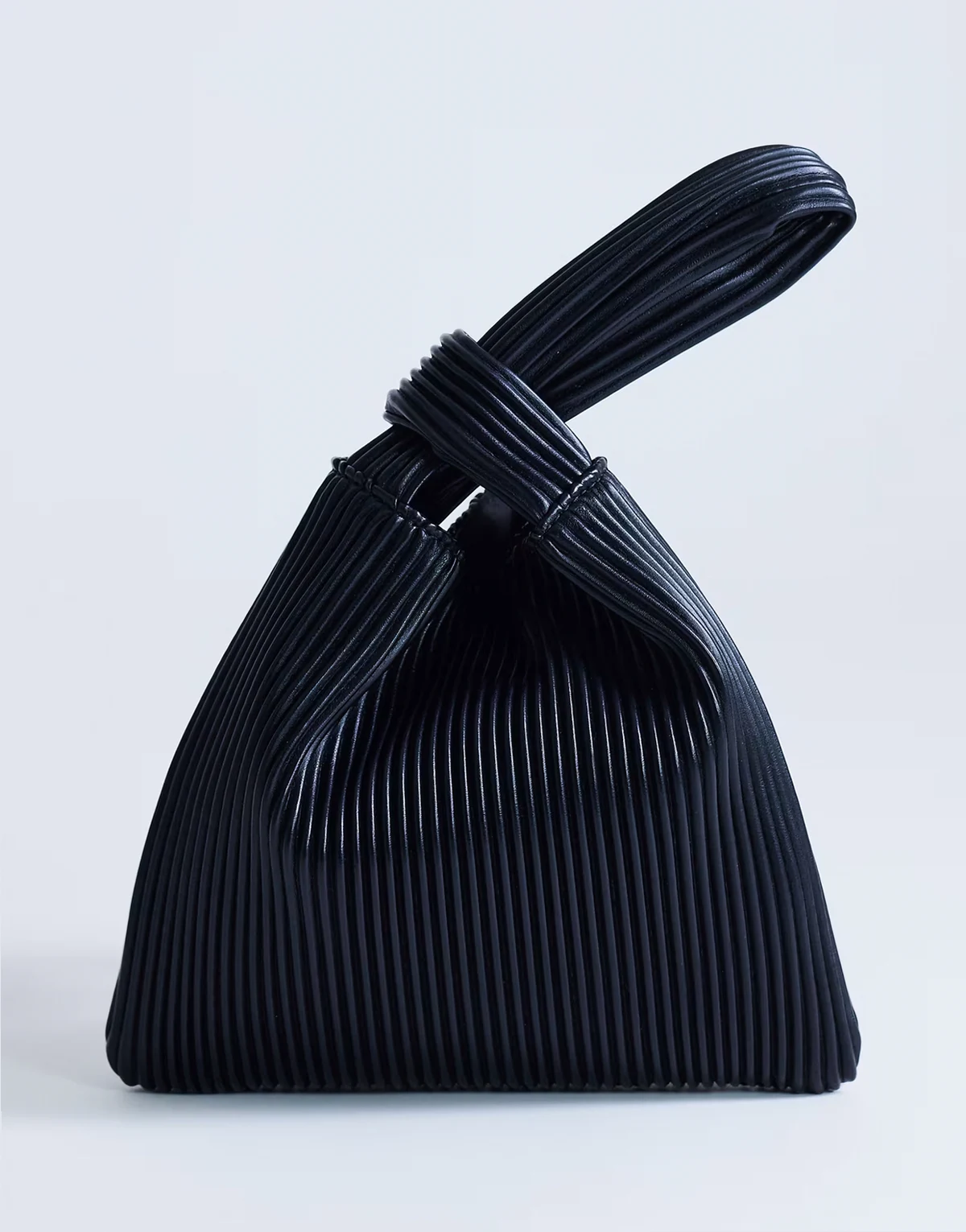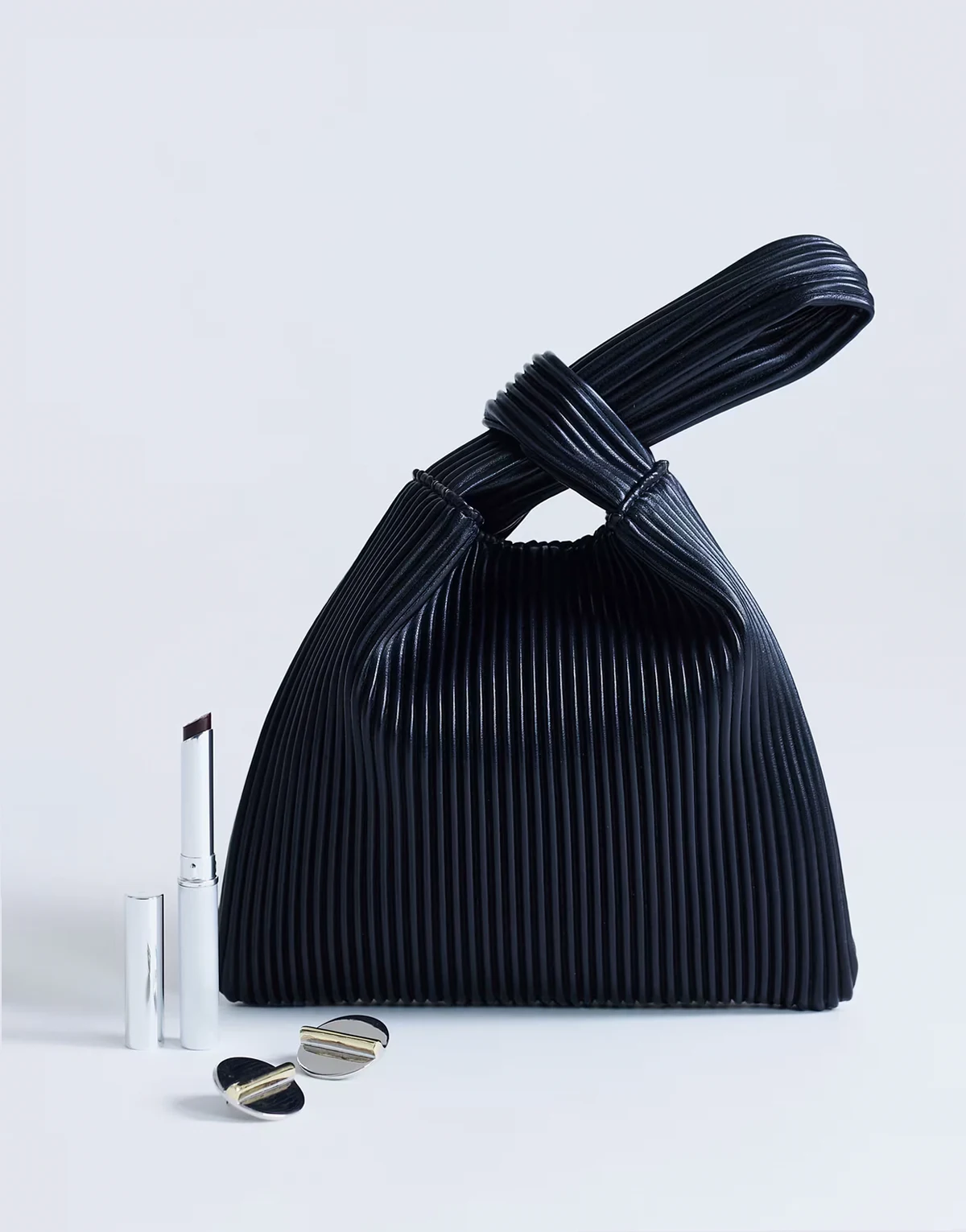 The Gracie bag is crafted from a pleated, matte fabric. It features a handy grab handle. Styled with other products. Each item sold separately