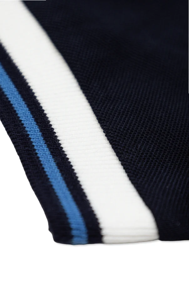 Revel in the refined spirit of Dolce & Gabbana Kids with this classic boys’ polo shirt, masterfully crafted from superior cotton for a sumptuously soft, breathable, and durable finish. Its understated navy blue hue is elevated with a polished collar and sleeve cuffs, highlighted by white and blue contrast stripes—invoking an aura of contemporary sophistication.