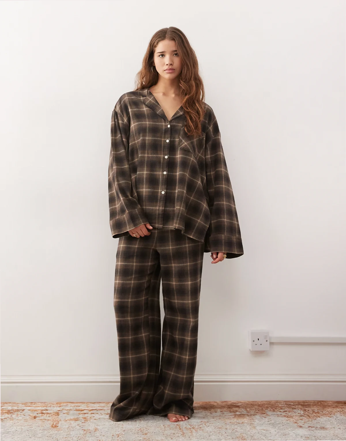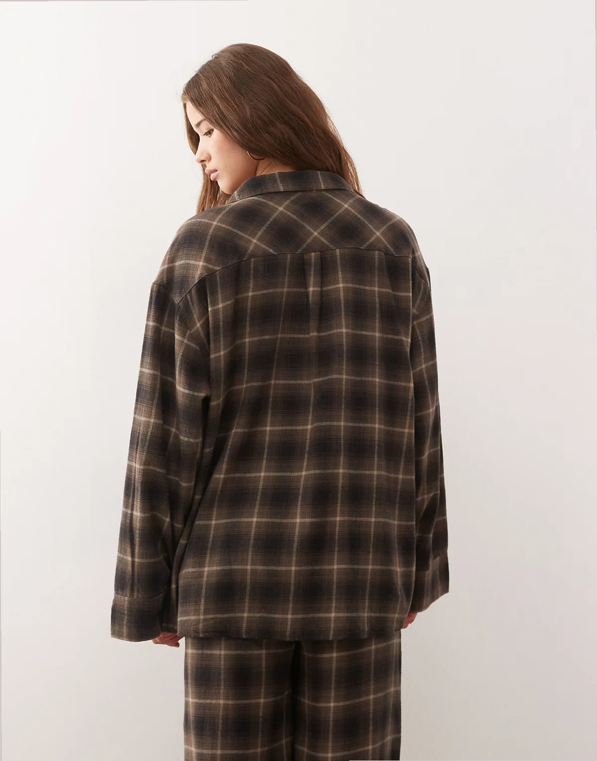 lounge oversized shirt in brown plaid - part of a set