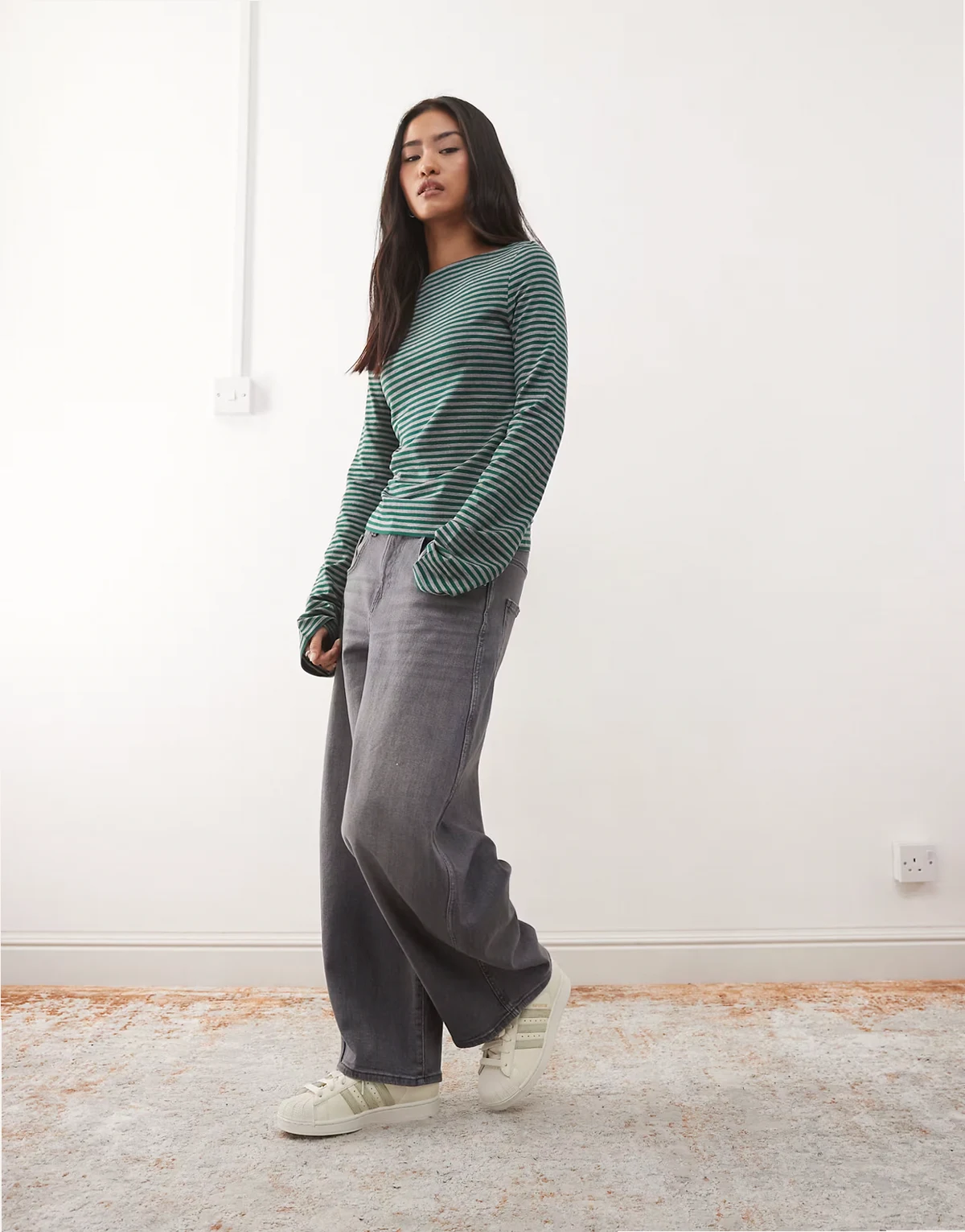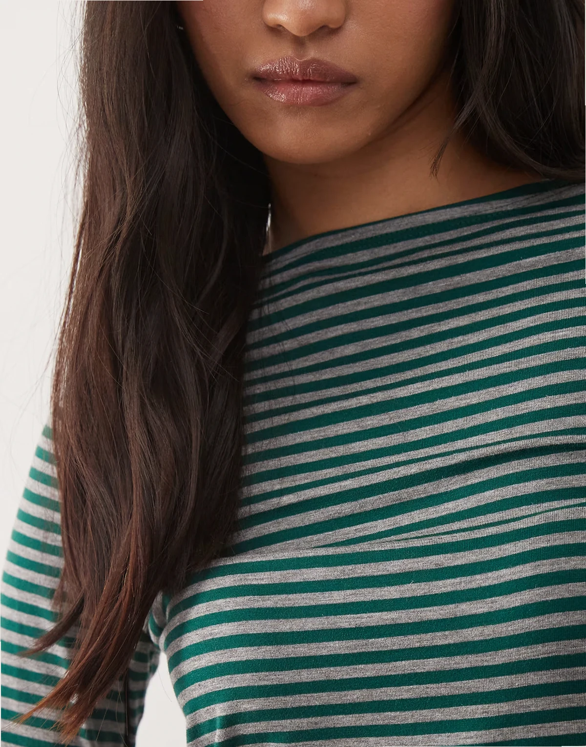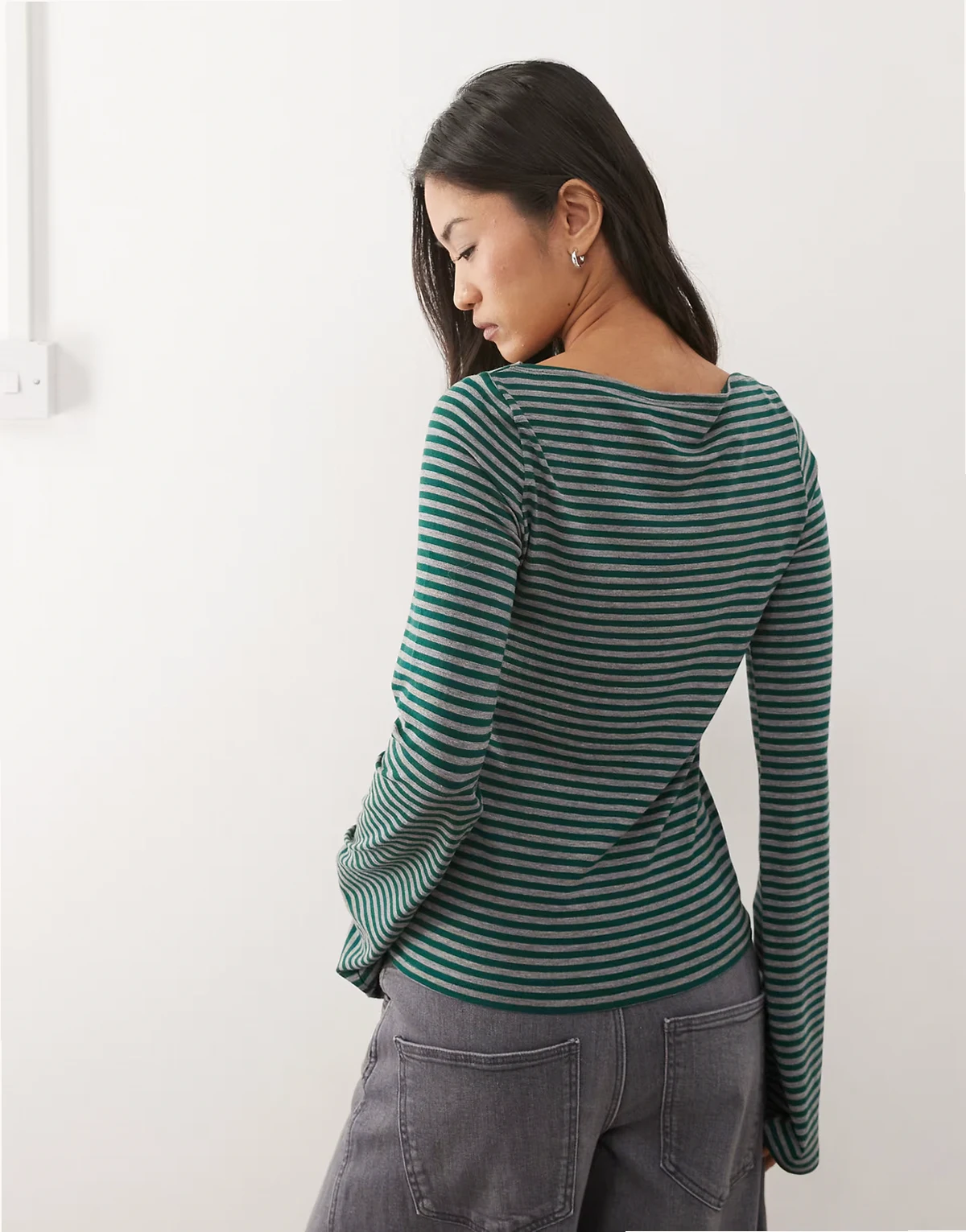 Annie soft boat neck long sleeve top in dark green and gray stripe exclusive to ASOS