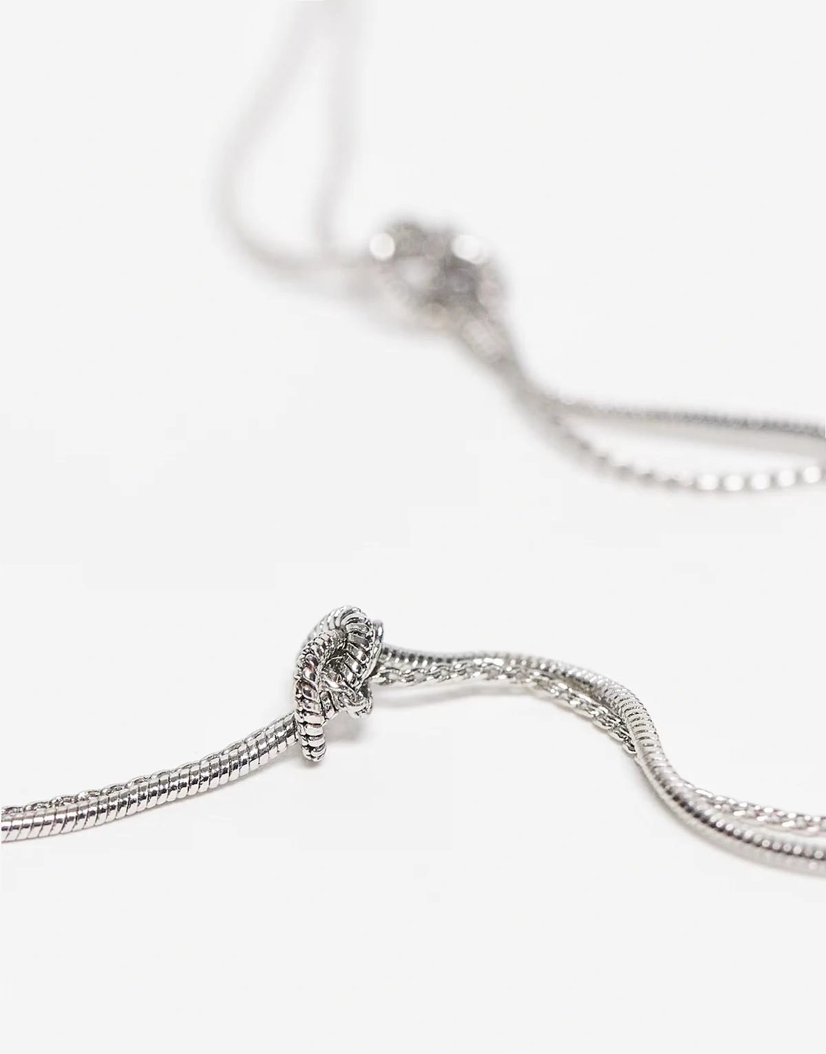 4. Unisex double layer knotted necklace in silver tone