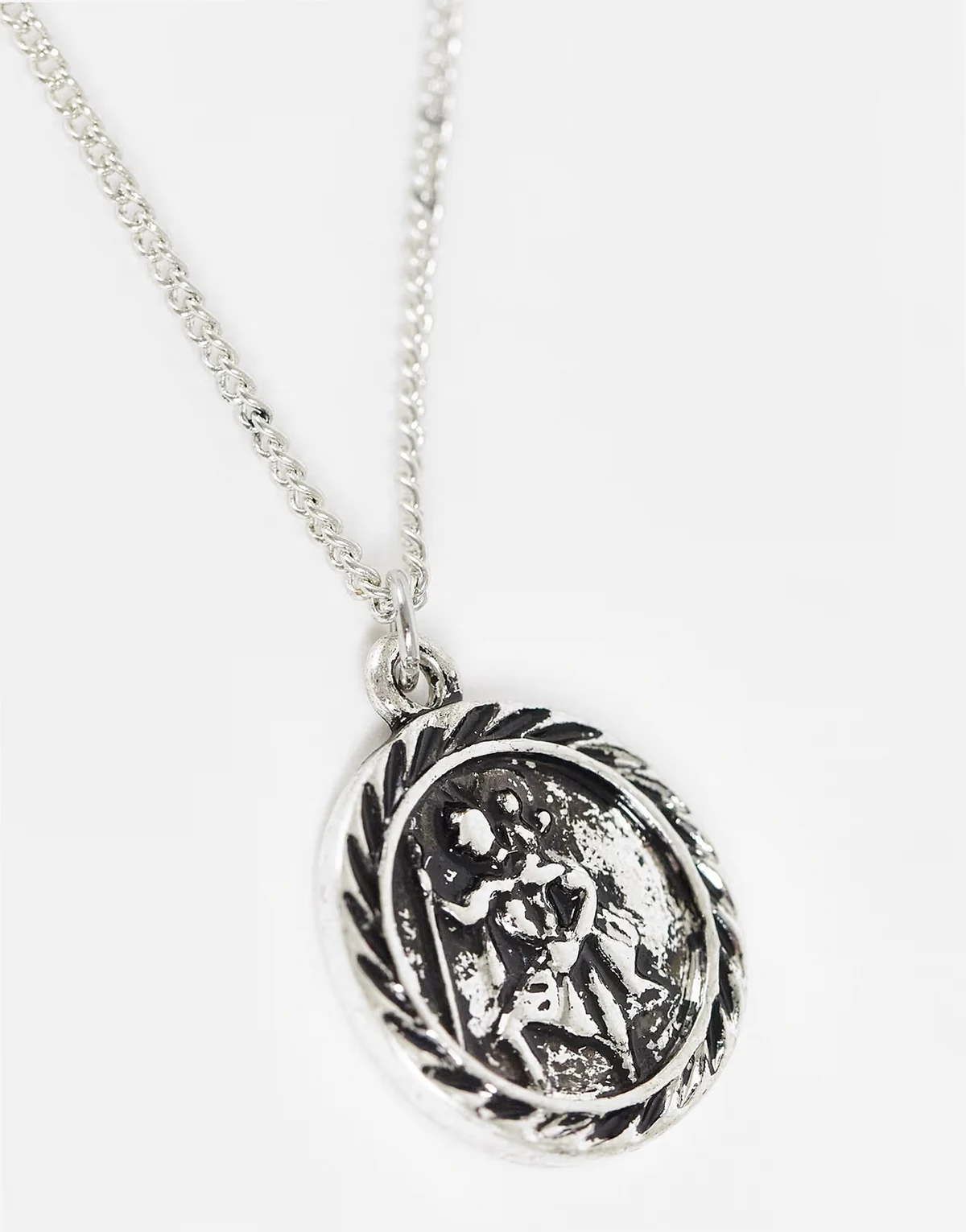 unisex St Christopher pendant necklace in burnished silver