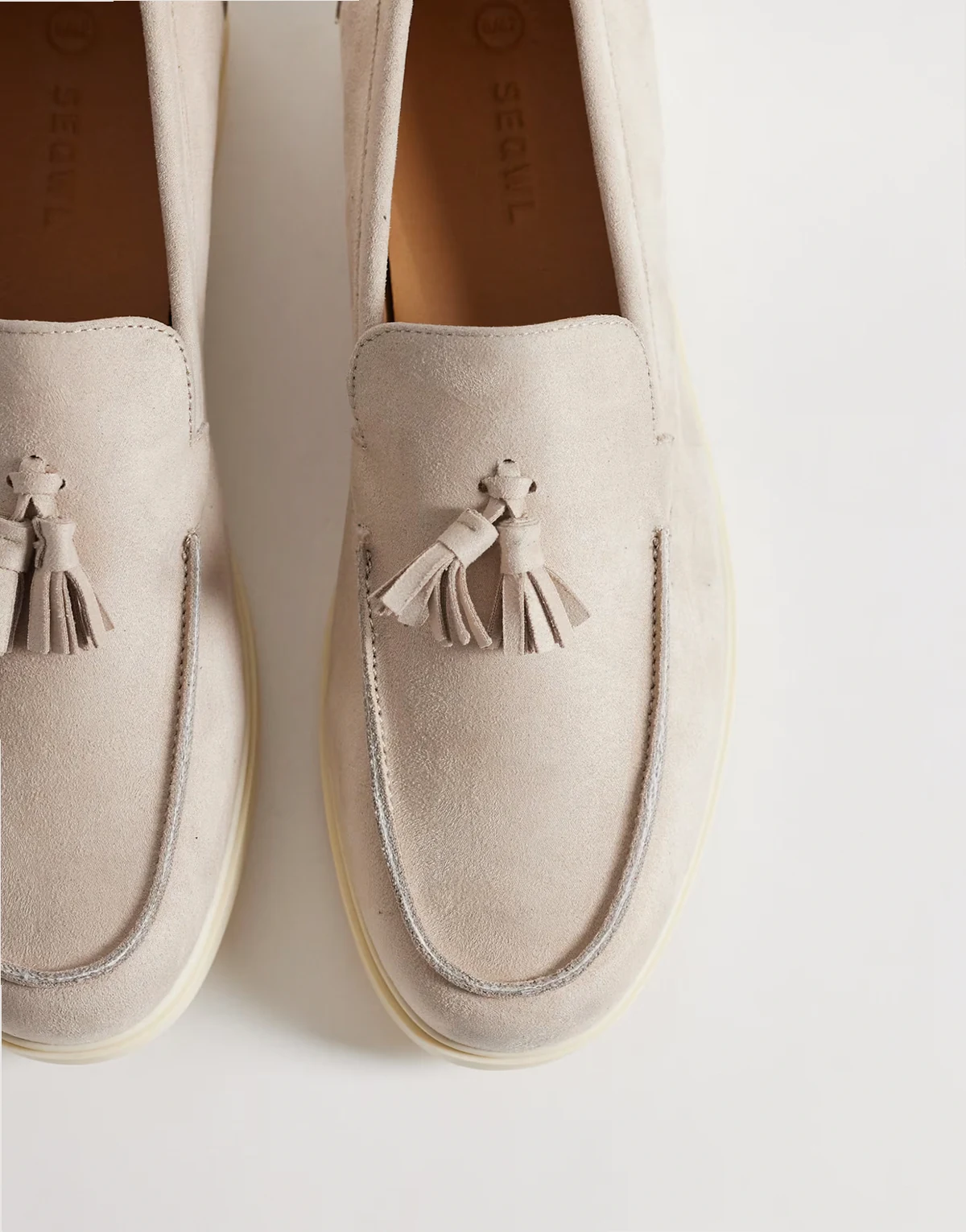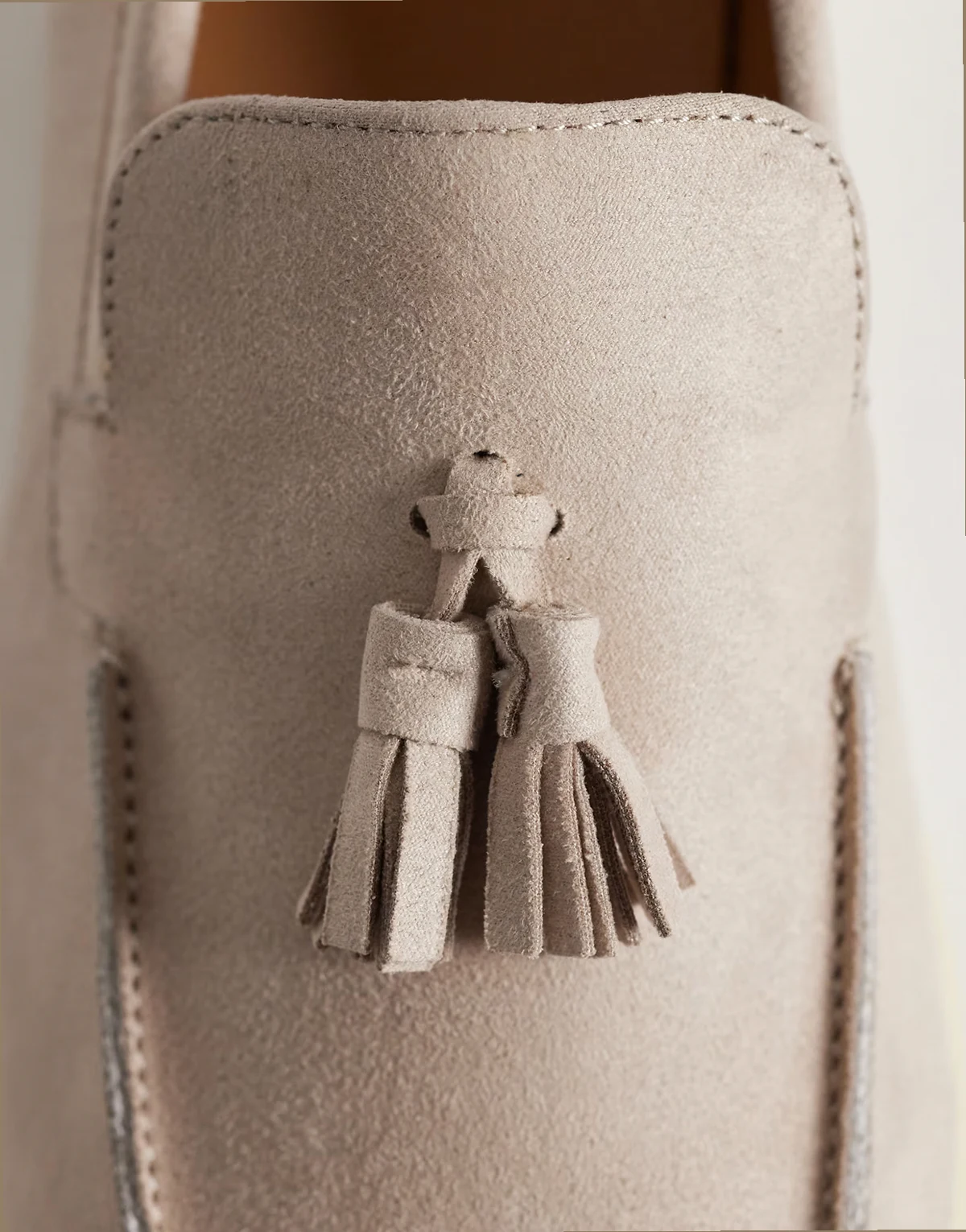 Kayak tassel loafers in stone microsuede