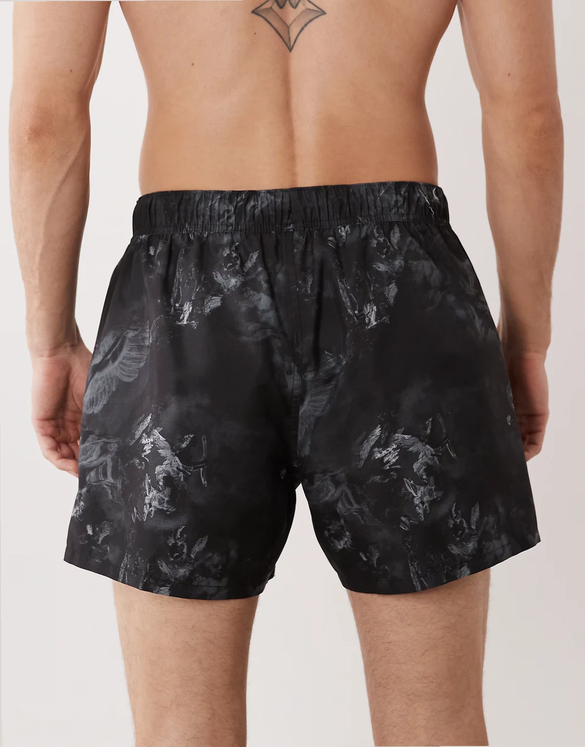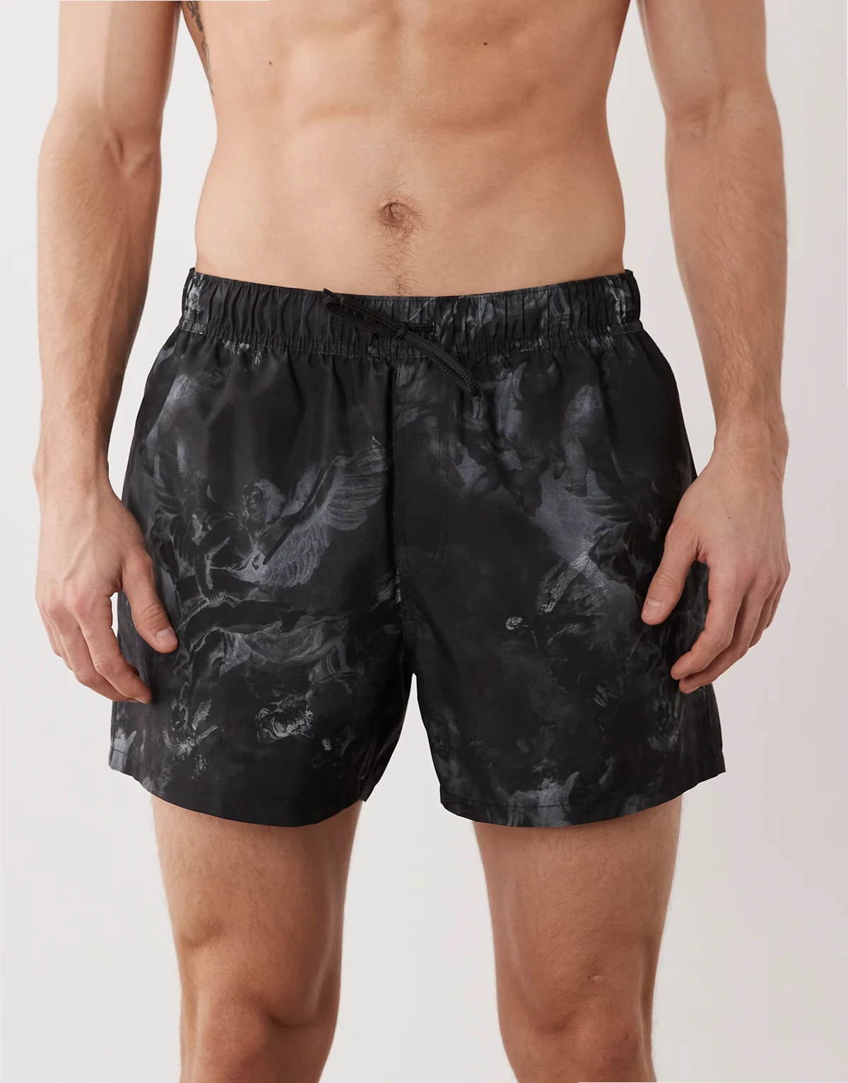 swim shorts in short length with cherub print in black