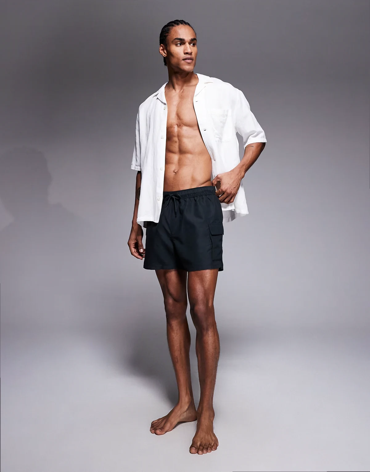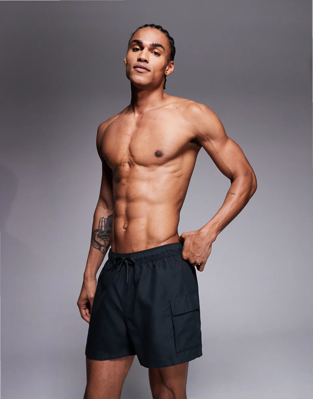 swim shorts in short length with cargo pockets in black