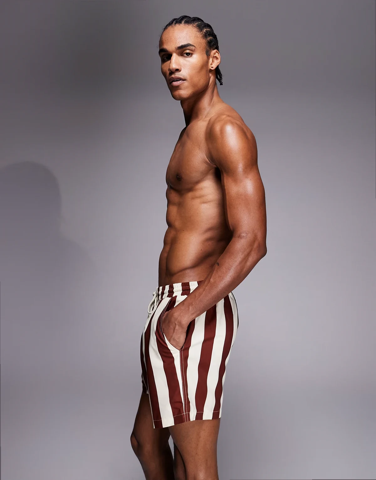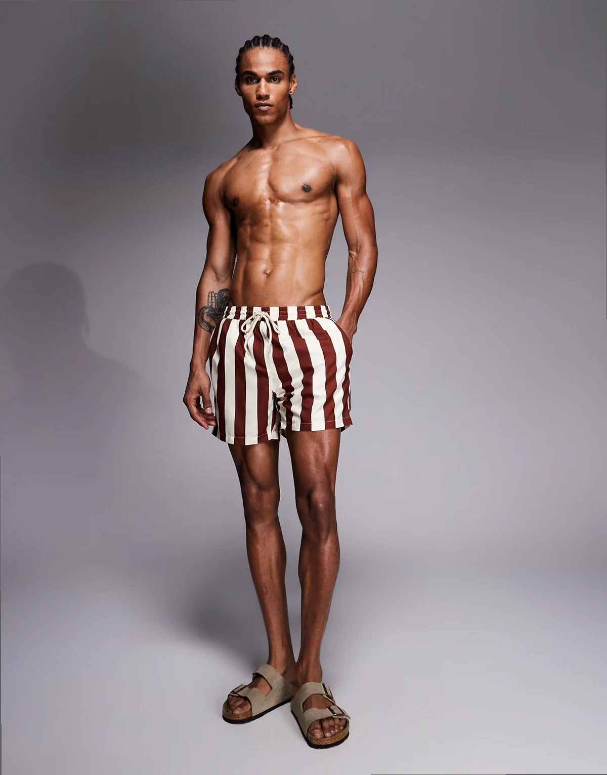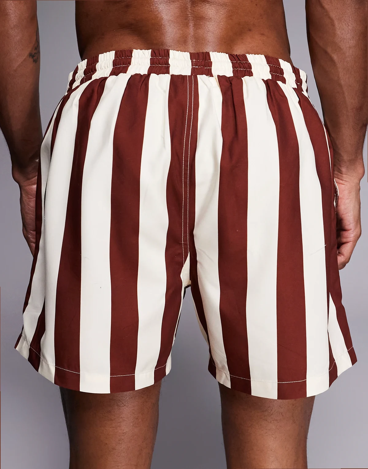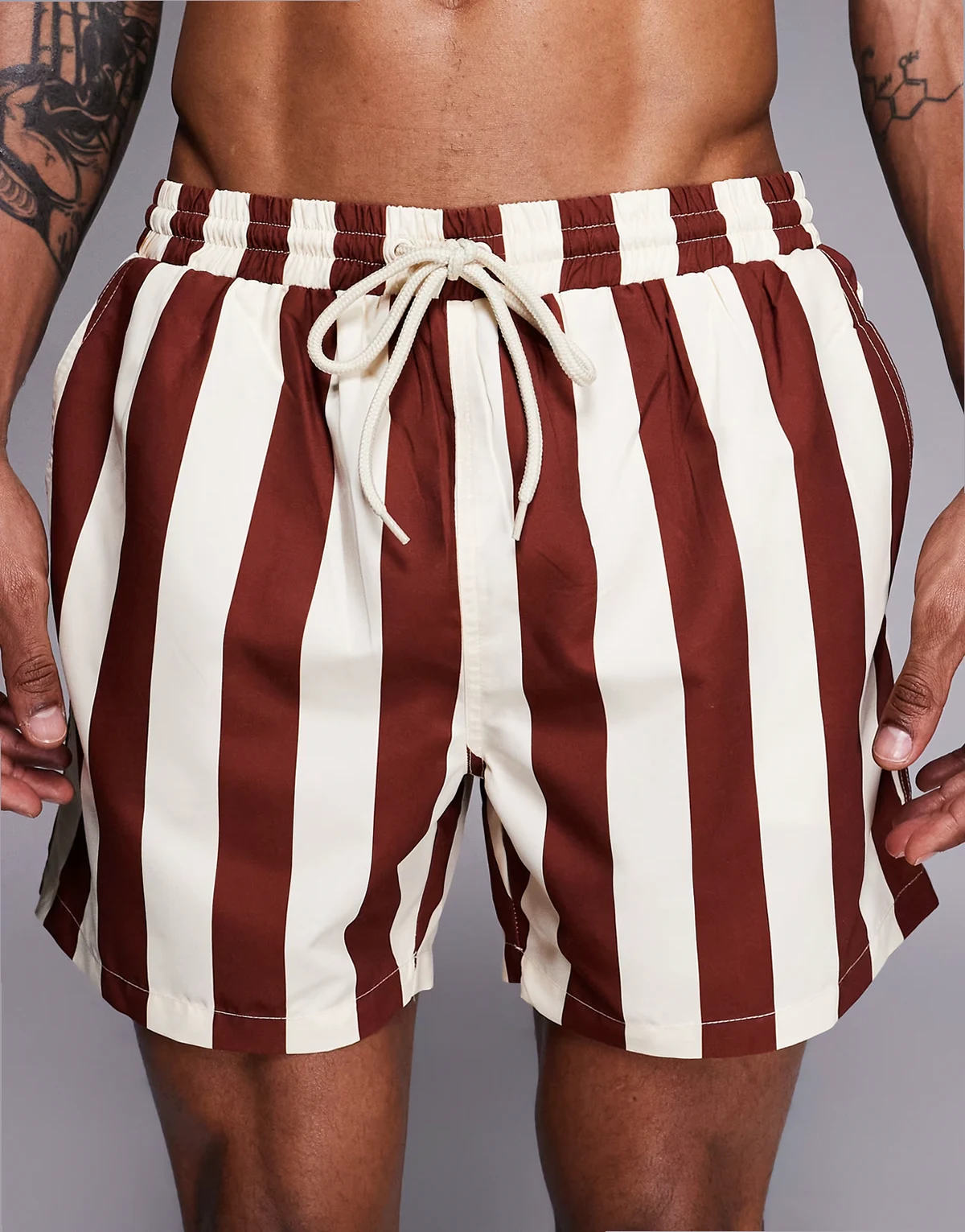 striped swim shorts in brown and beige