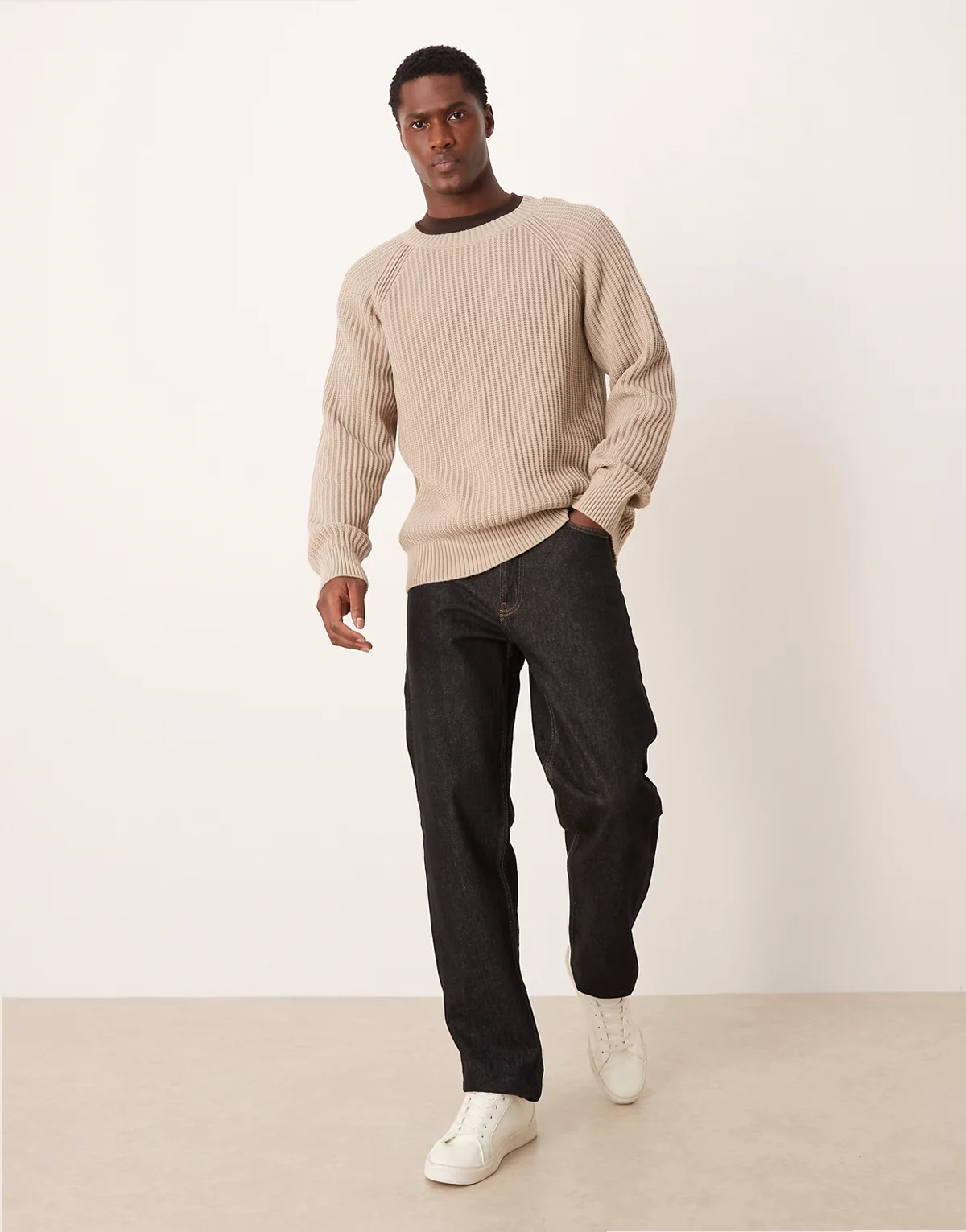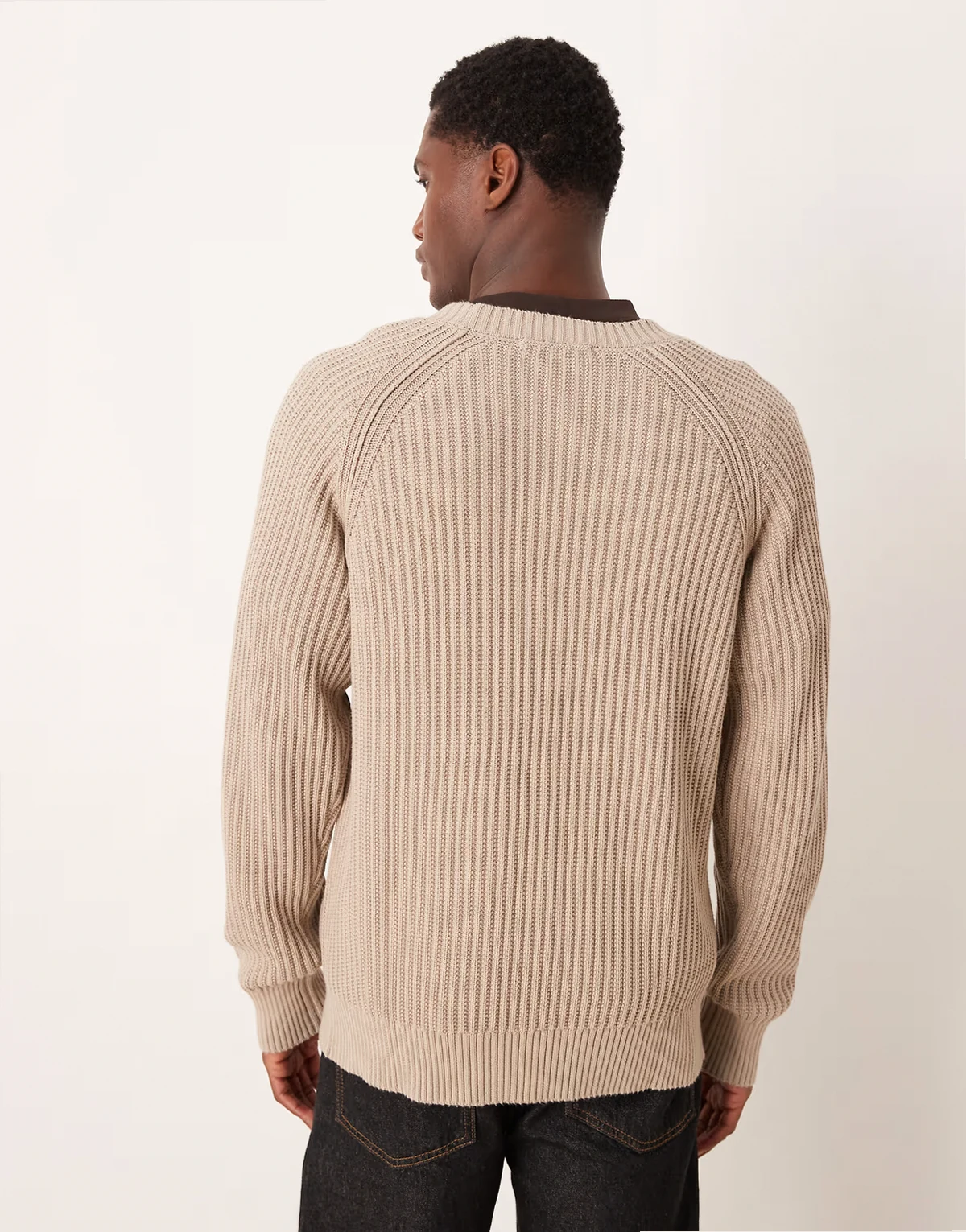 ribbed sweater with raglan sleeves in beige