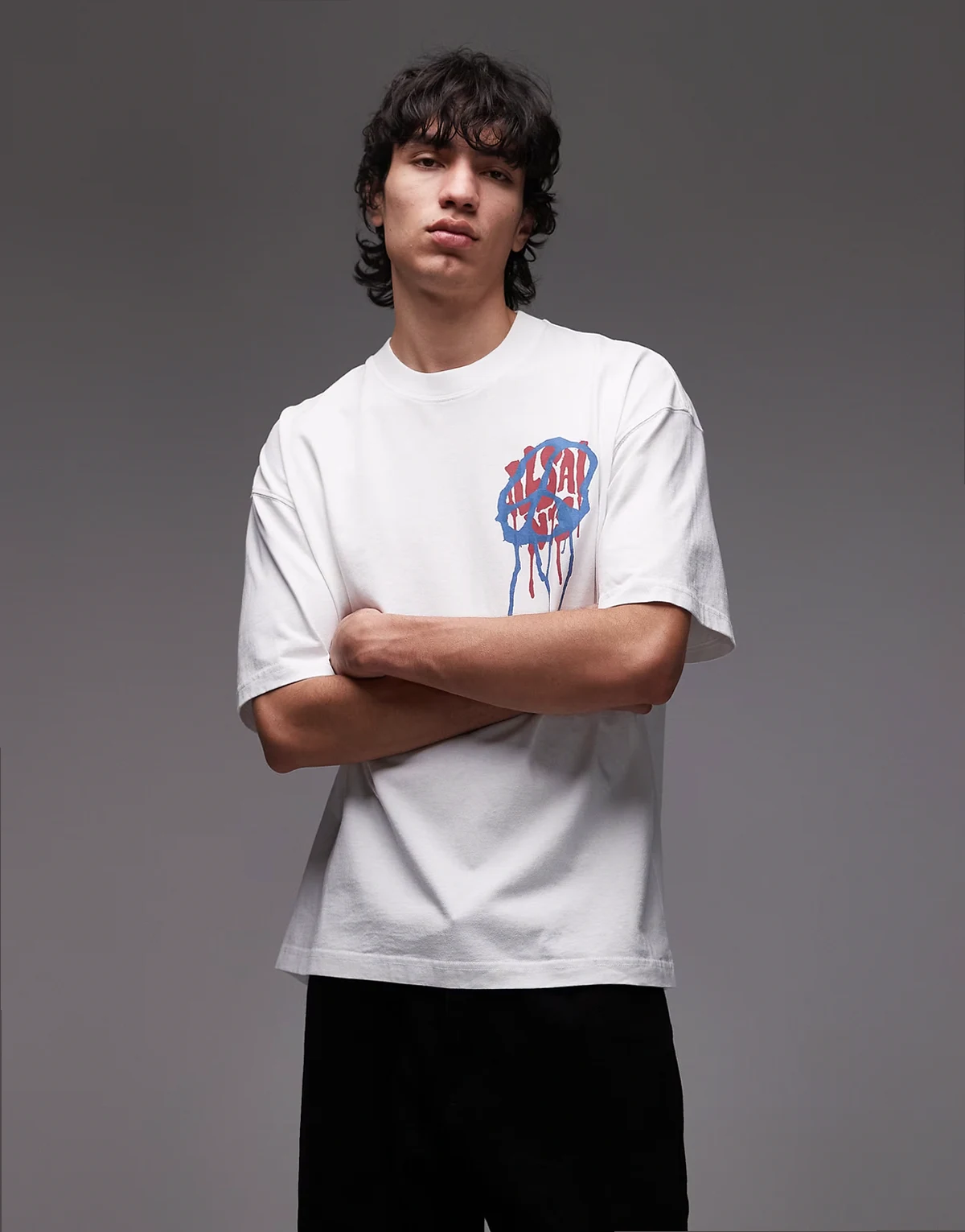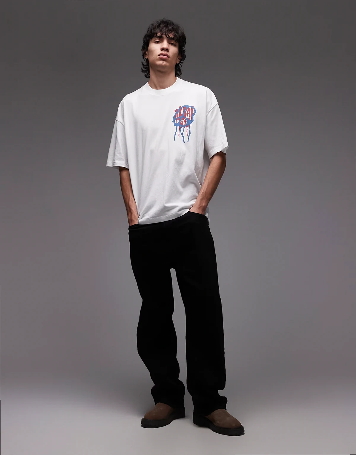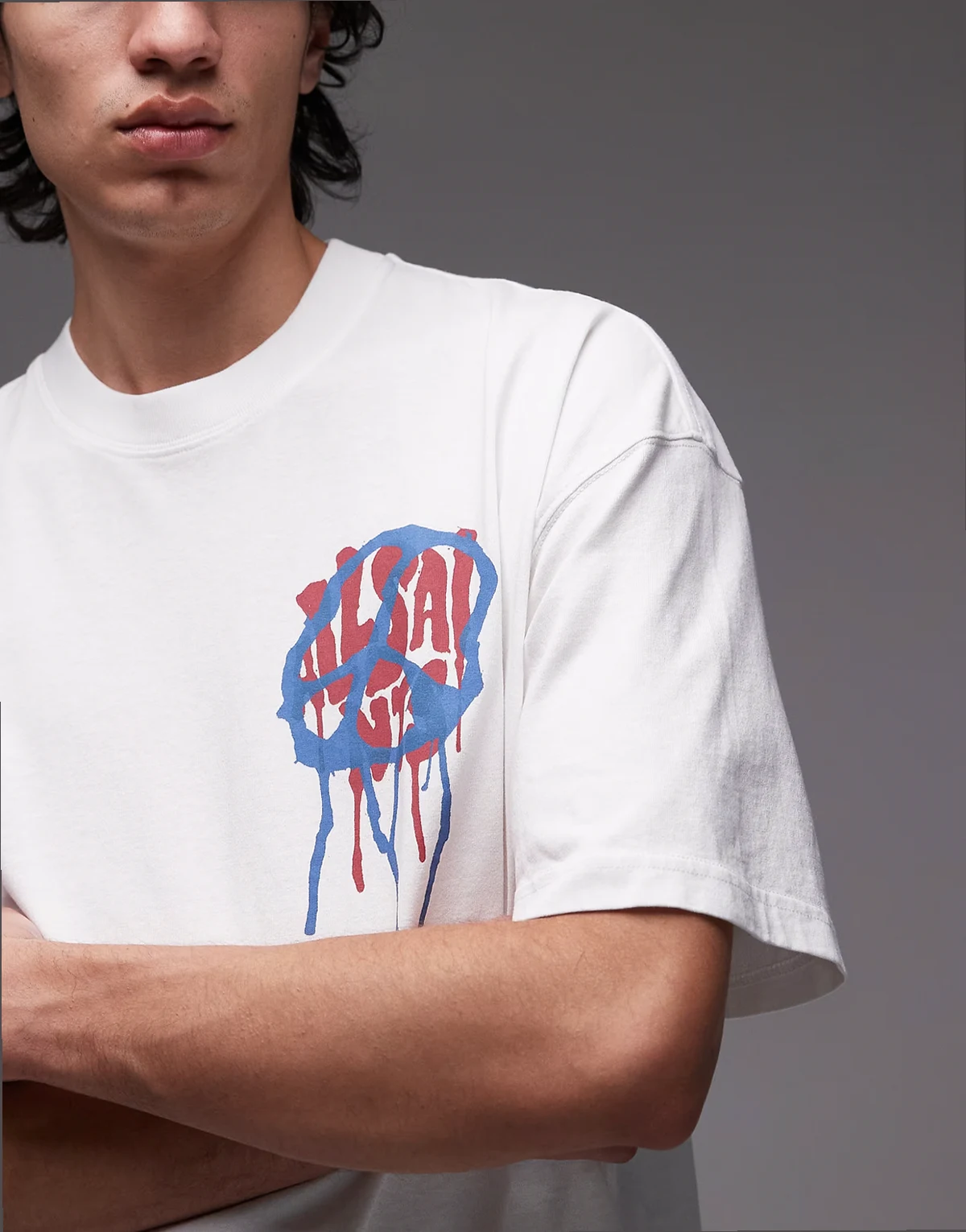 AllSaints branded text and graphic print on front and back