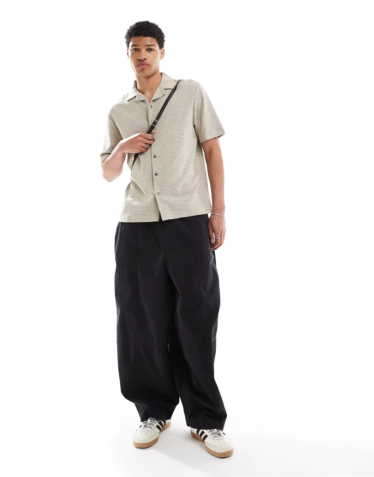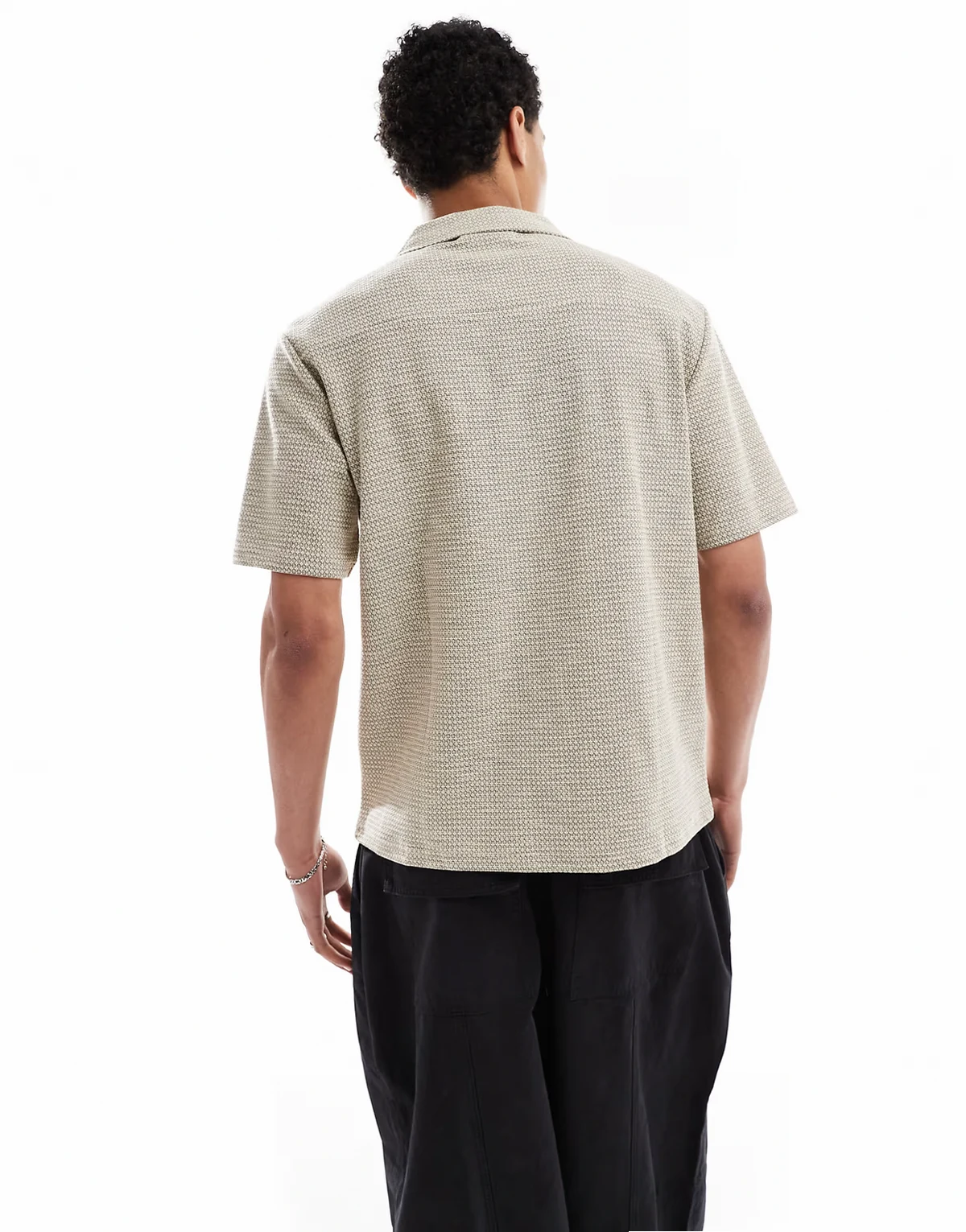 revere collar textured shirt with taping in stone