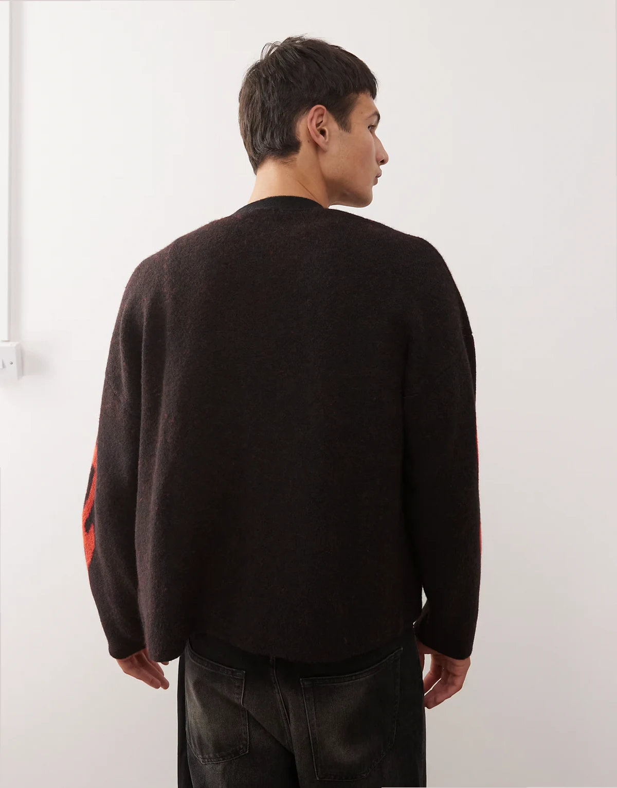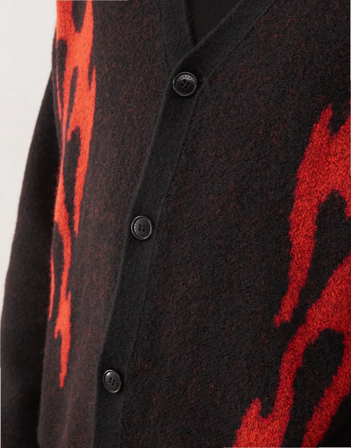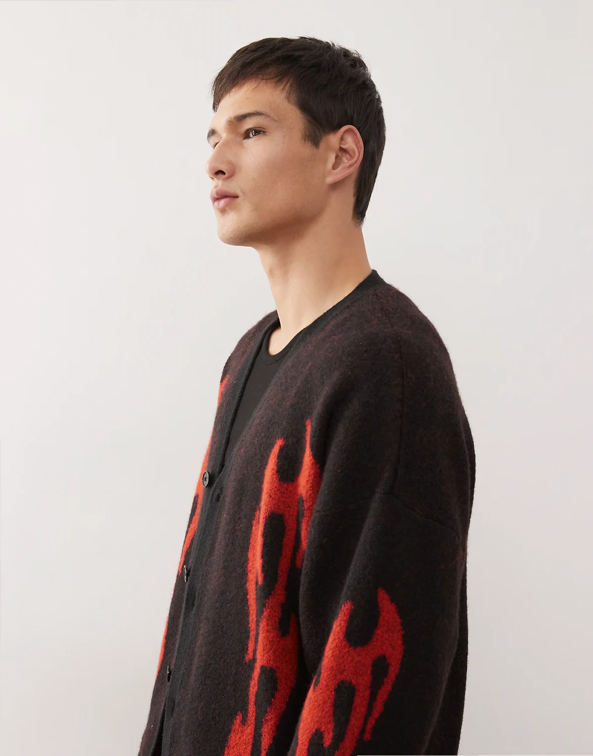 wool blend oversized cardigan with flame graphics in black