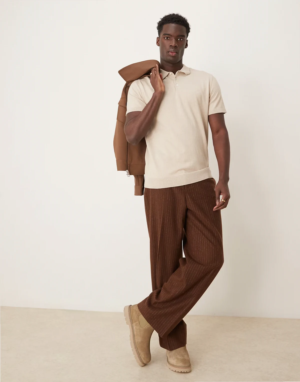 knit polo shirt in cream