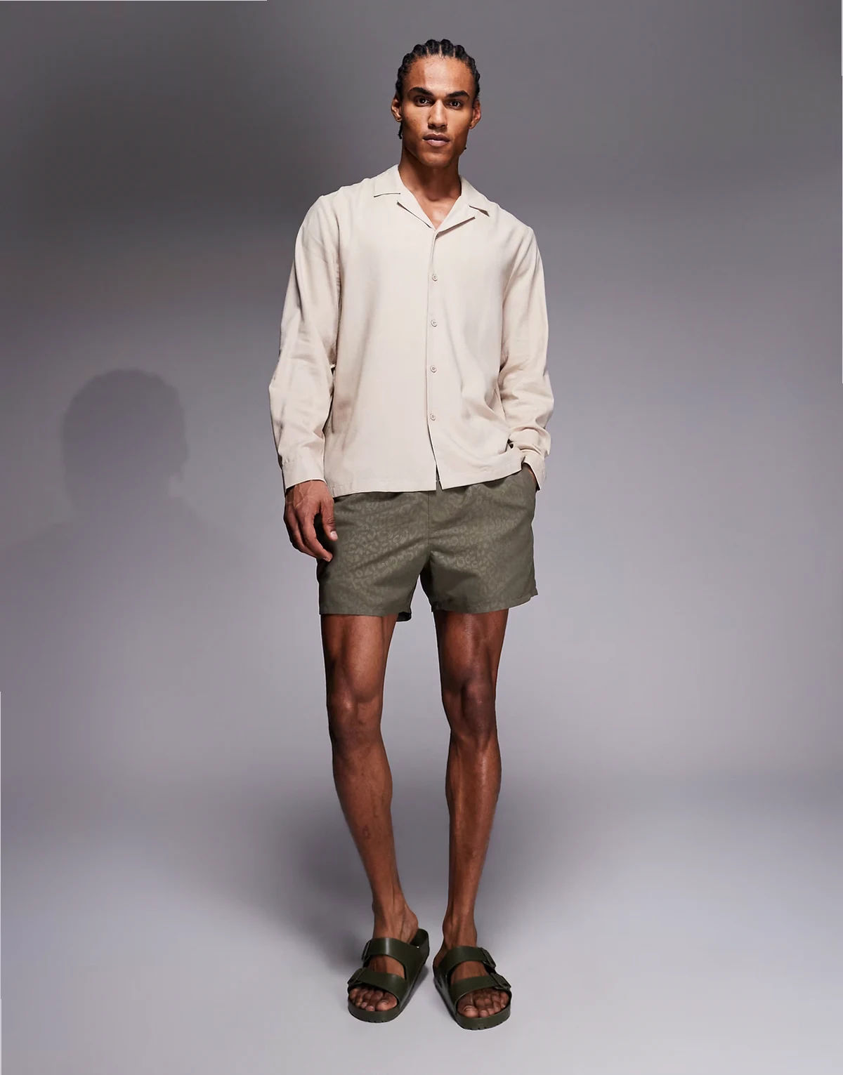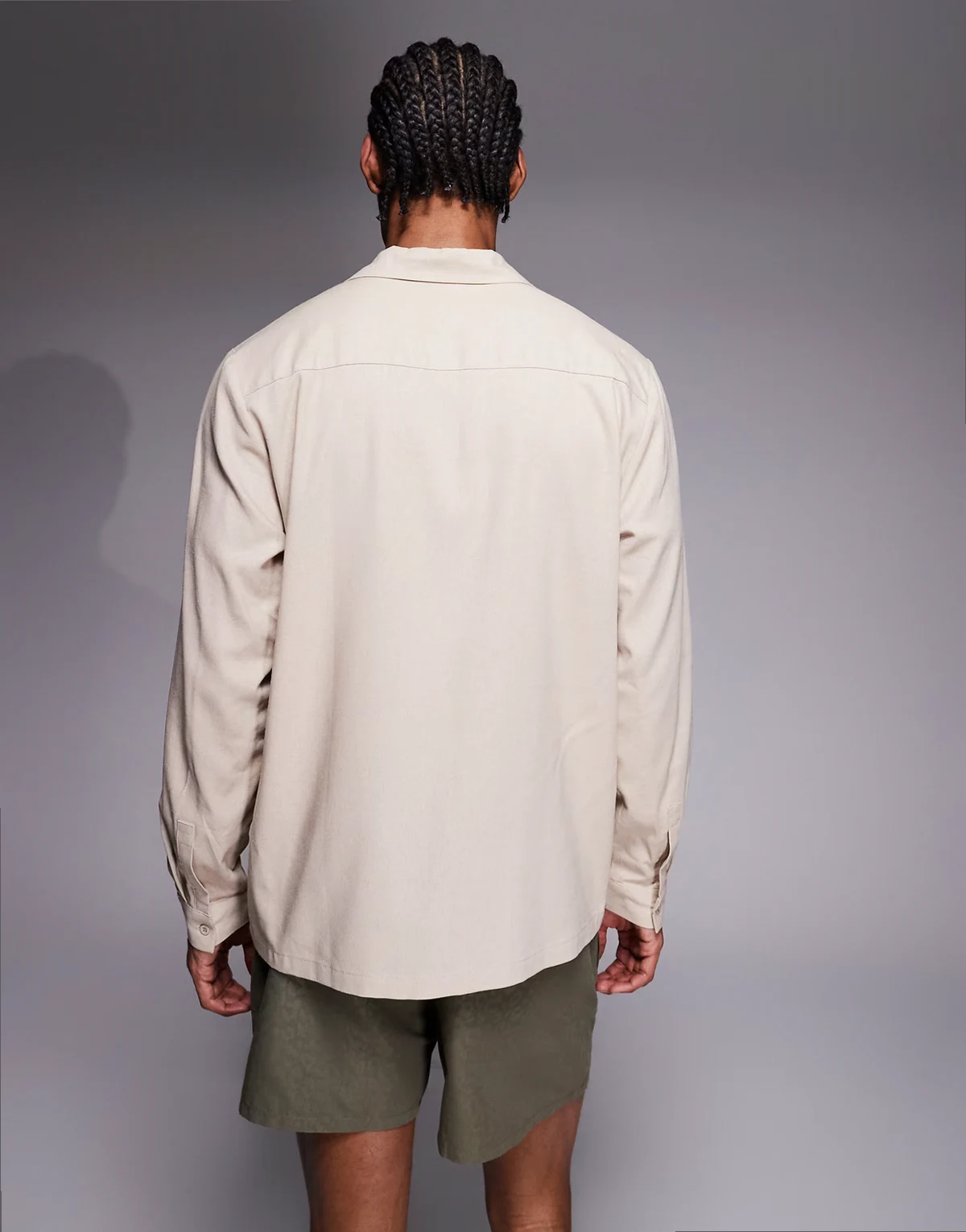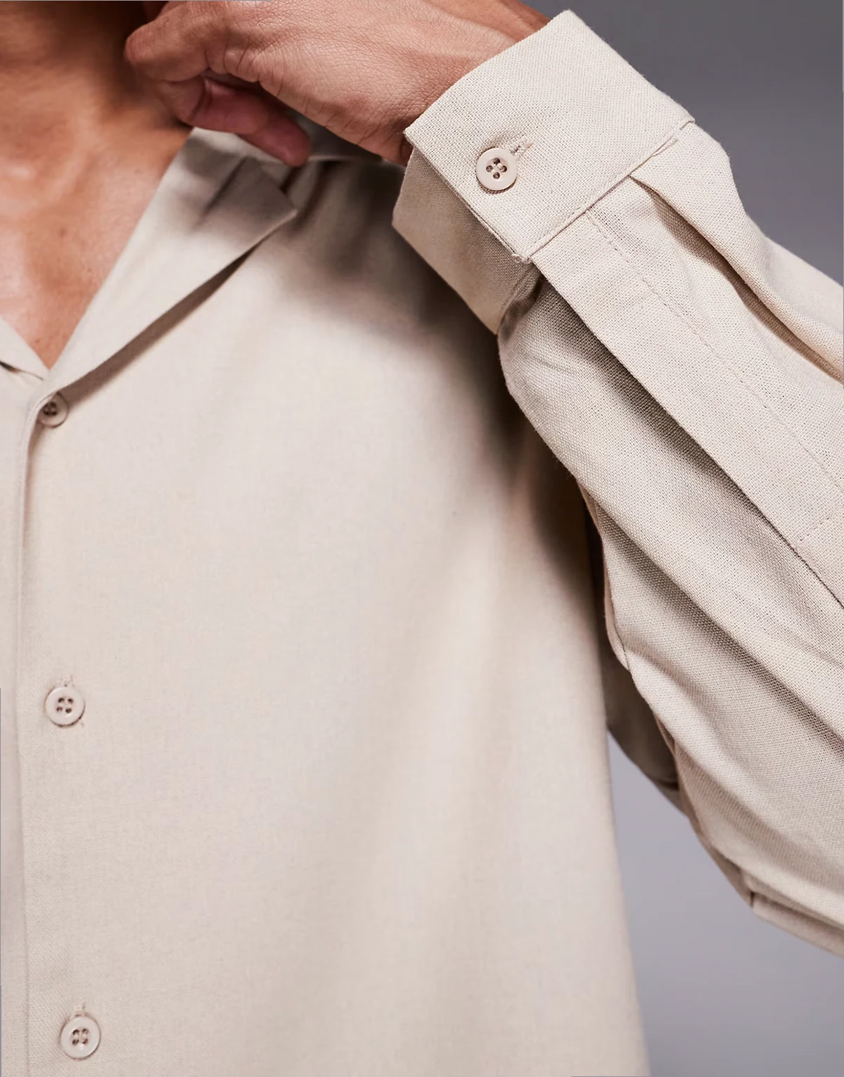 long sleeve linen blend shirt in beige