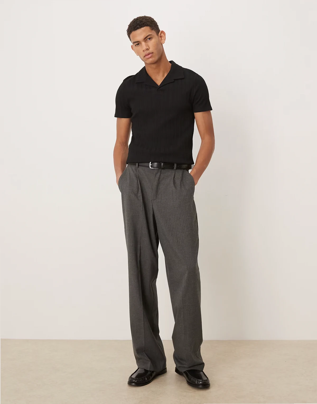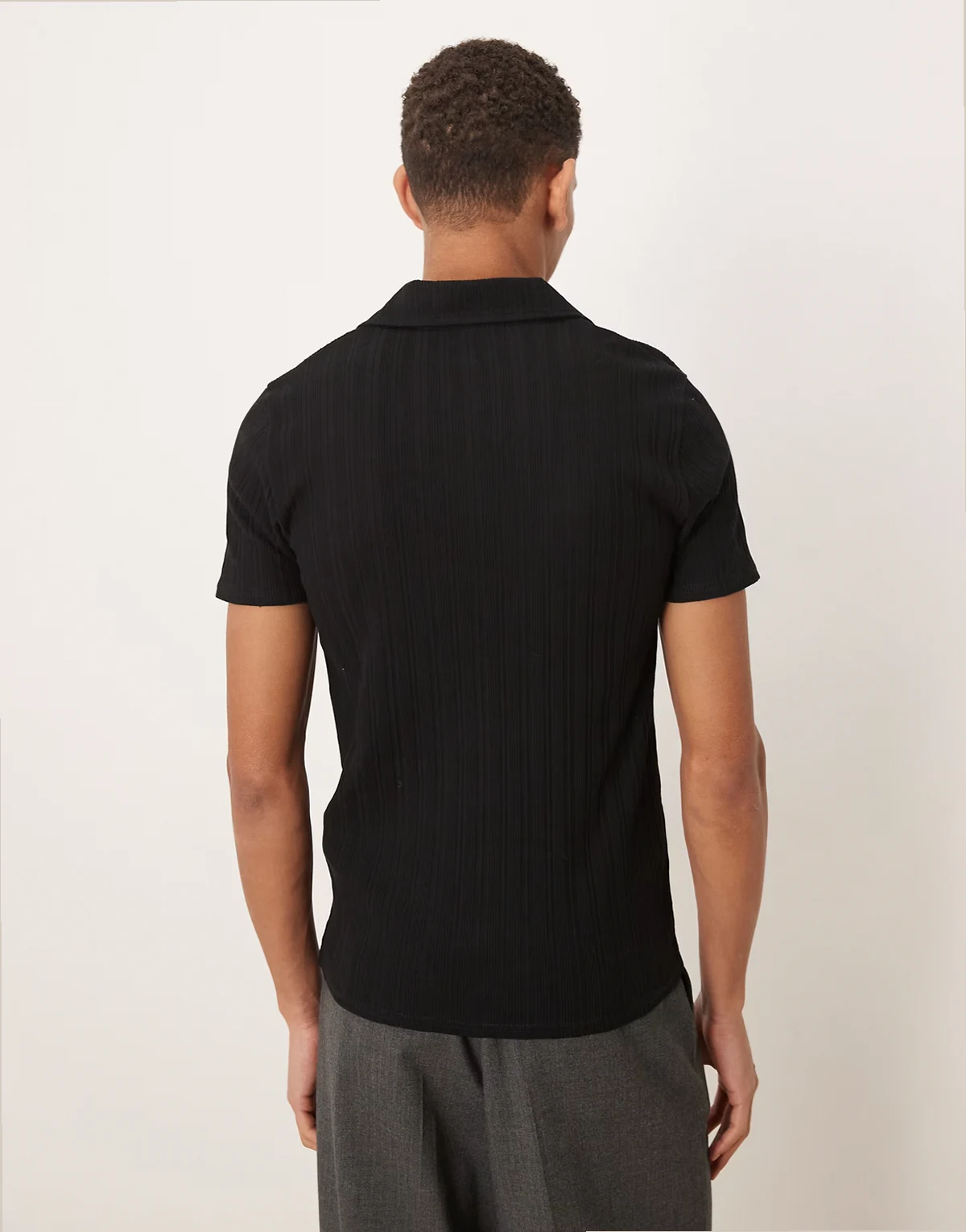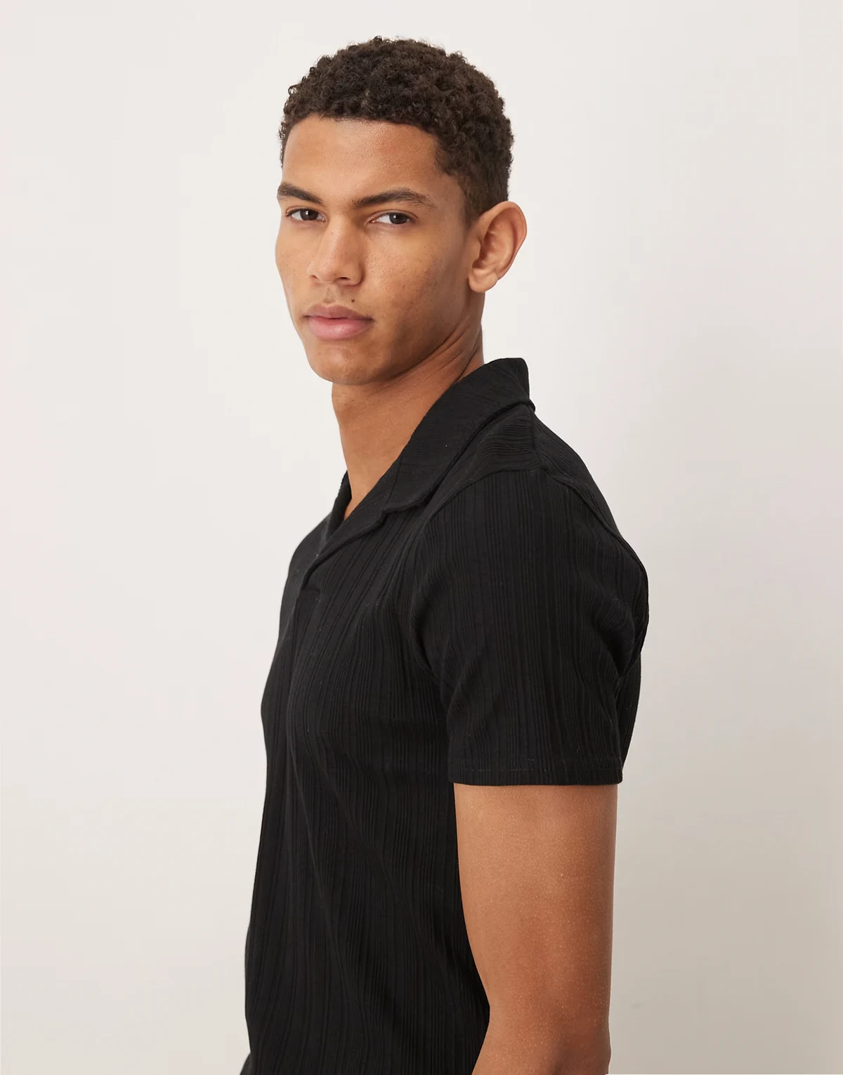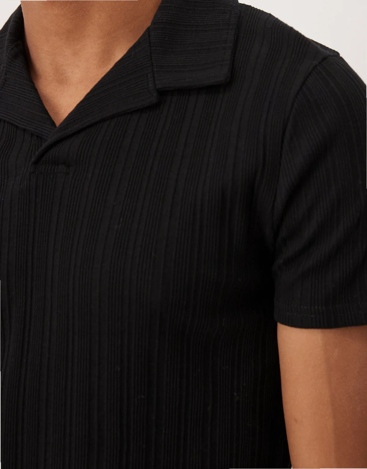 heavyweight muscle fit camp collar polo shirt in black rib knit