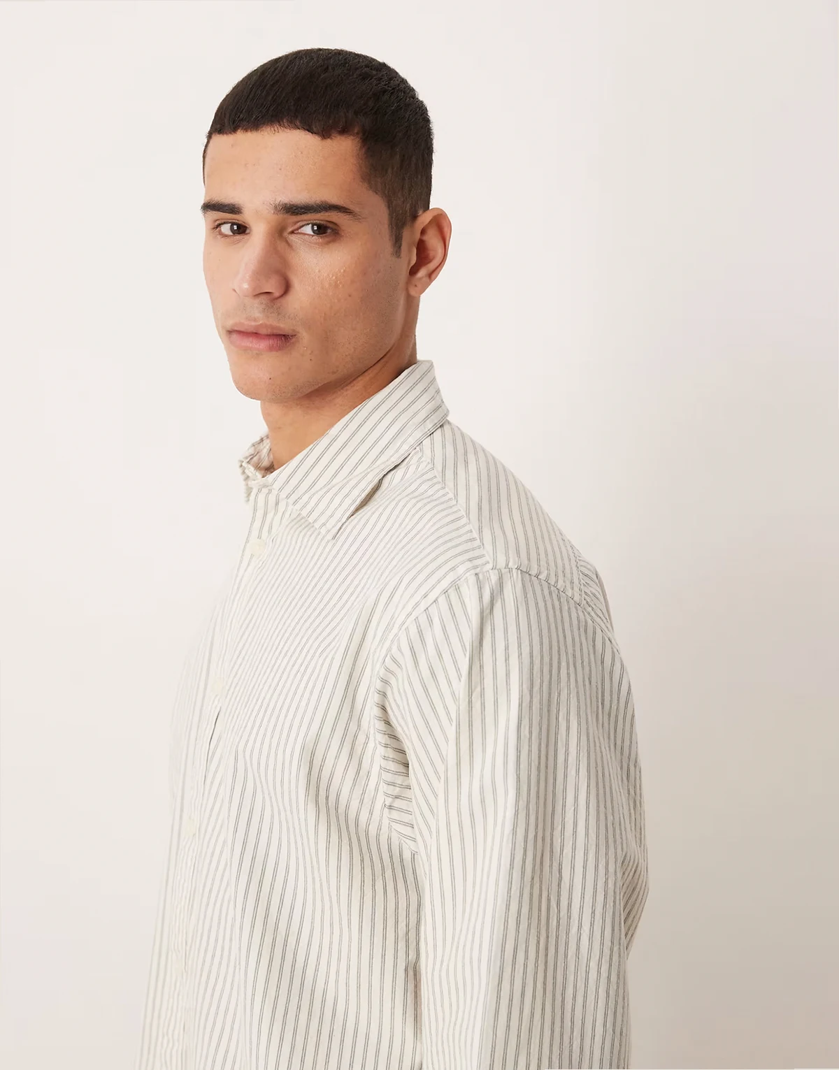 oversized boxy striped shirt in beige