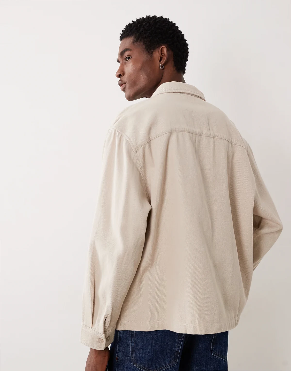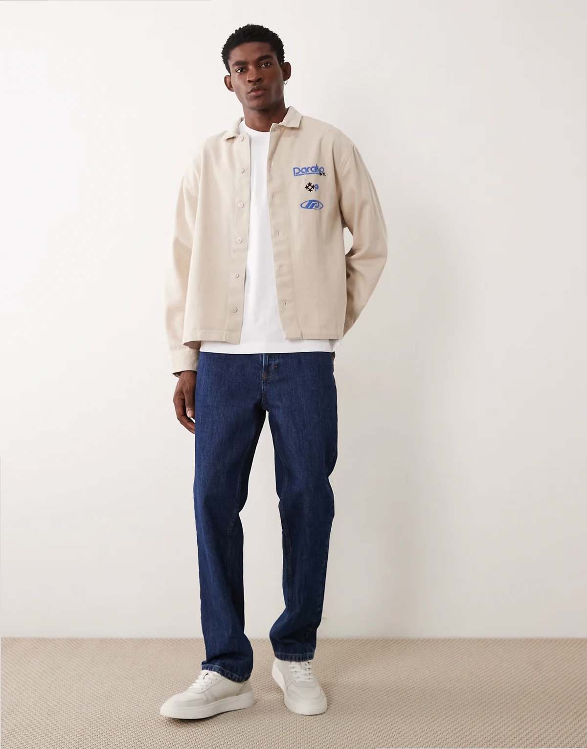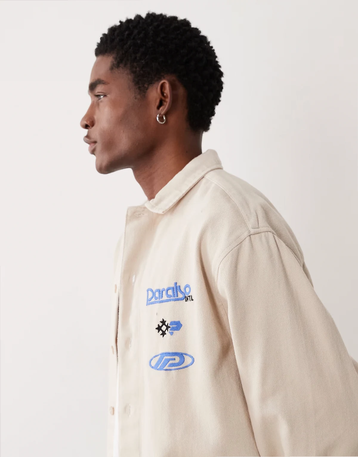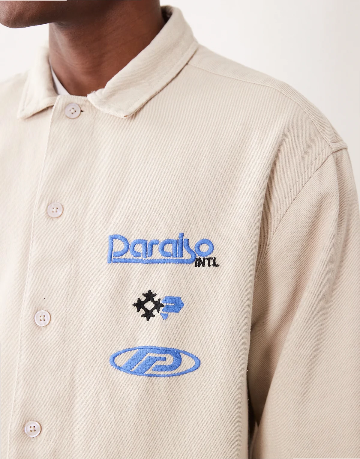 cotton twill oversized shirt with chest embroidery in beige