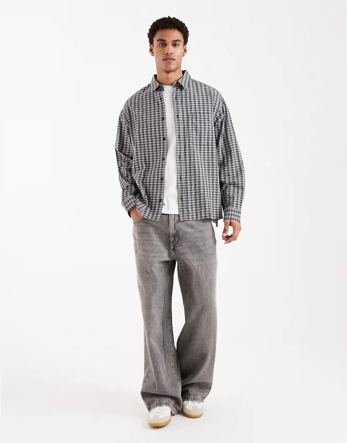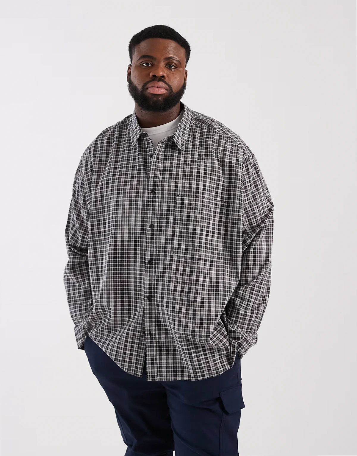 oversized dad plaid shirt in black