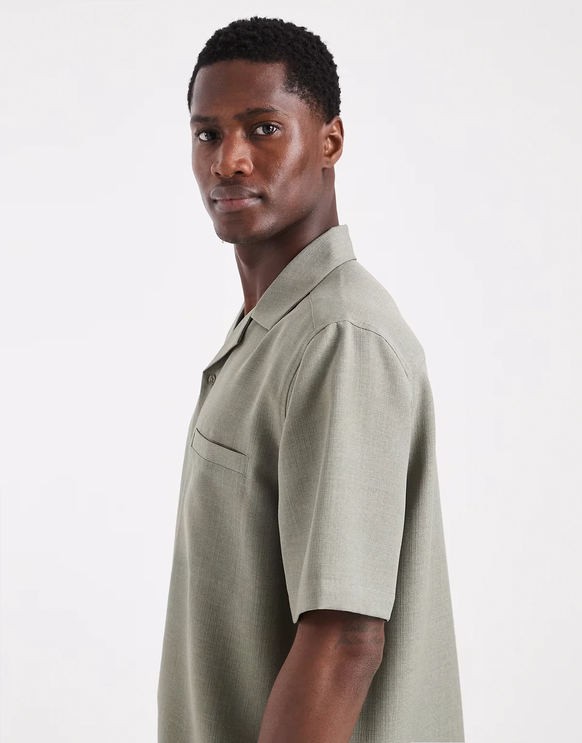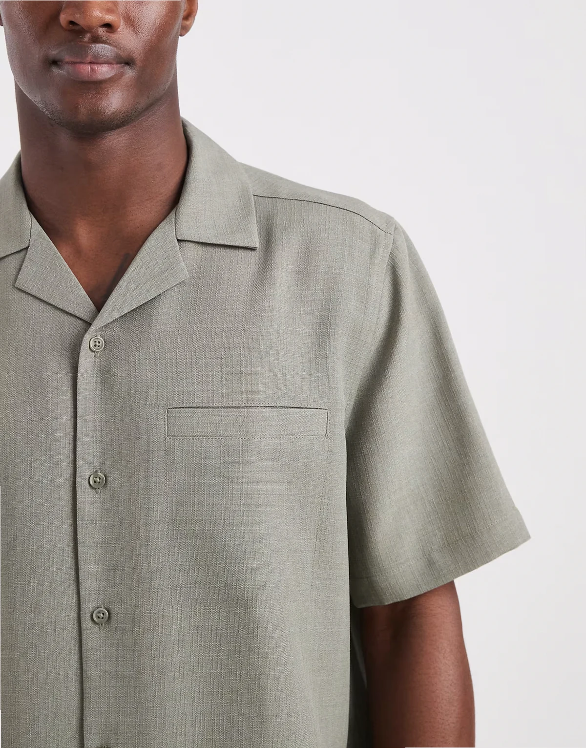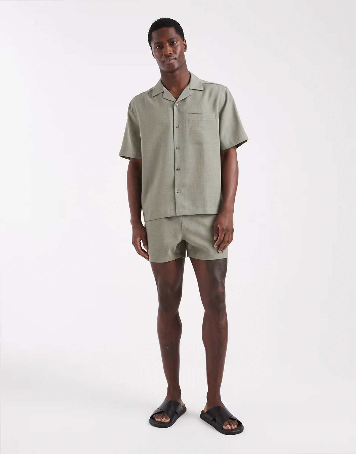 linen look relaxed camp collar shirt in khaki - part of a set