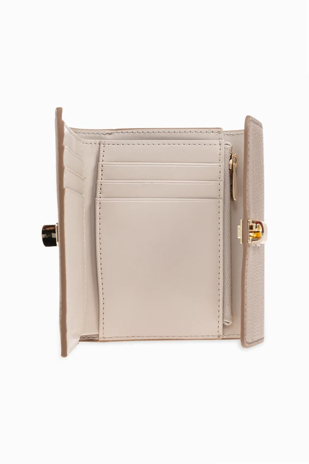 The Iride Small Wallet from Furla’s exclusive collection epitomizes understated luxury. Sculpted into a compact, rectangular silhouette with softly rounded edges, this distinctive accessory is meticulously crafted from premium cream-colored, finely grained leather , imparting both elegance and remarkable durability.