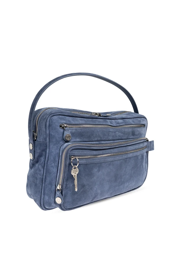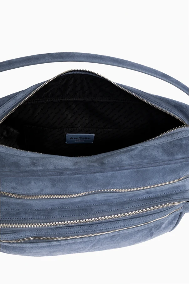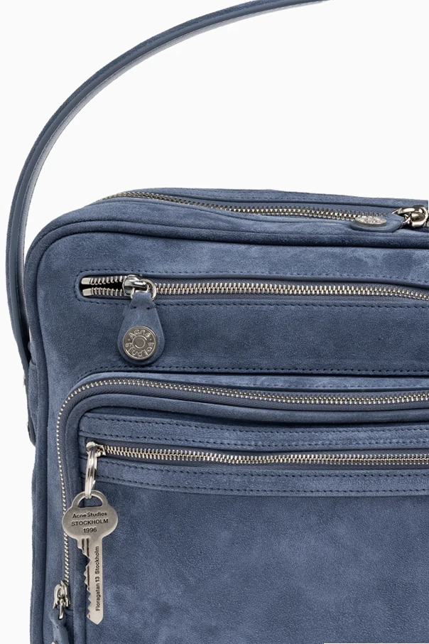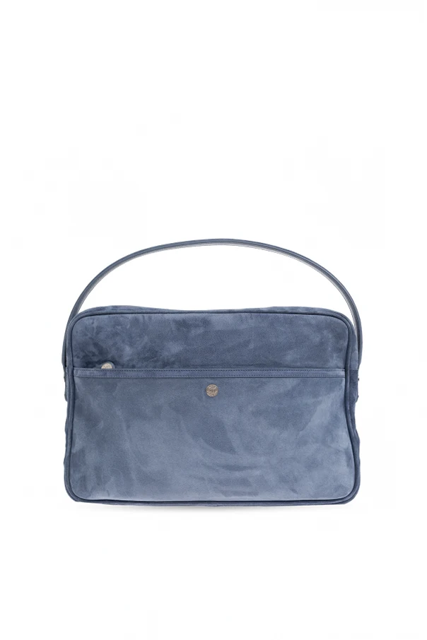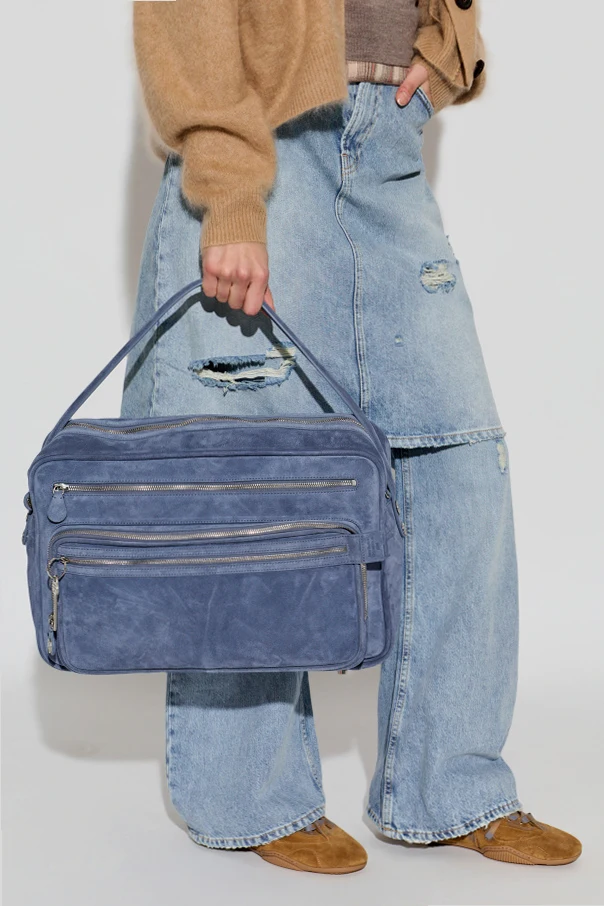 The ‘Camero’ Handbag by Acne Studios epitomizes refined sophistication. Crafted from premium natural suede, its rectangular silhouette is subtly rounded, exuding a gentle opulence. The matte, velvety finish imparts a quiet sense of luxury, while the harmonious solid color enhances its understated elegance.