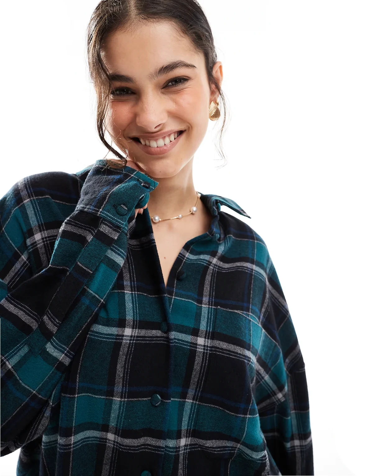 oversized shirt in green and black plaid