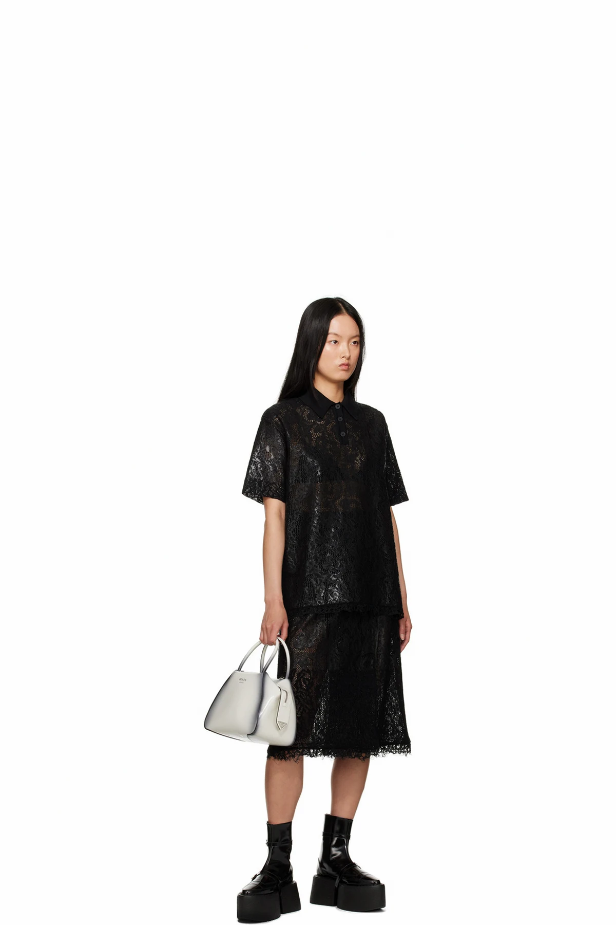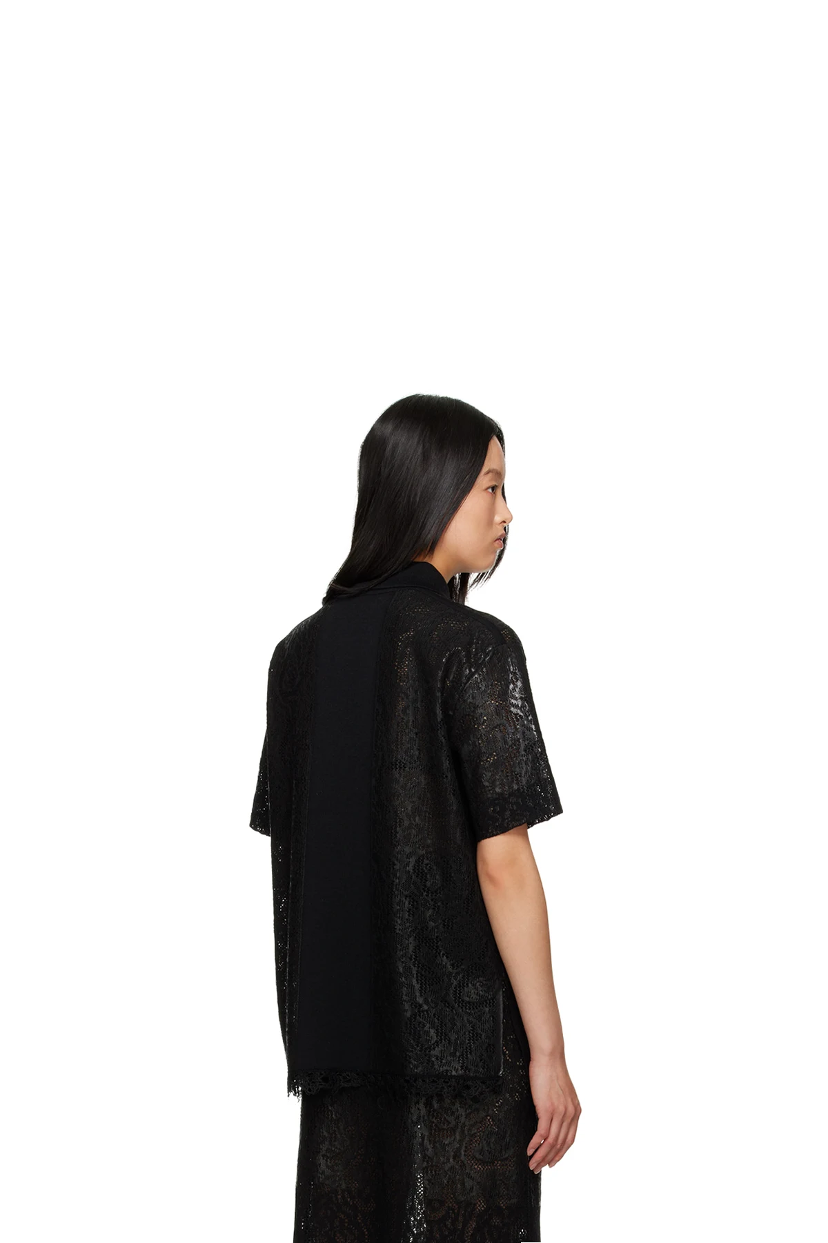 Polyurethane-coated virgin wool-blend lace polo.