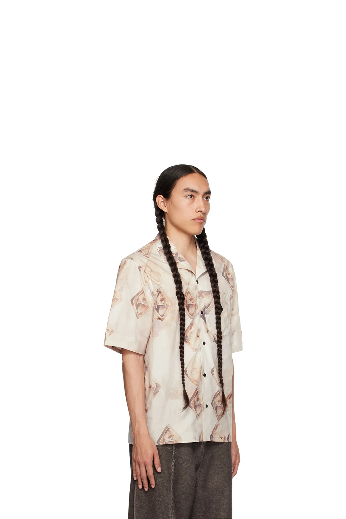 Cotton poplin shirt. Graphic and logo pattern printed throughout.