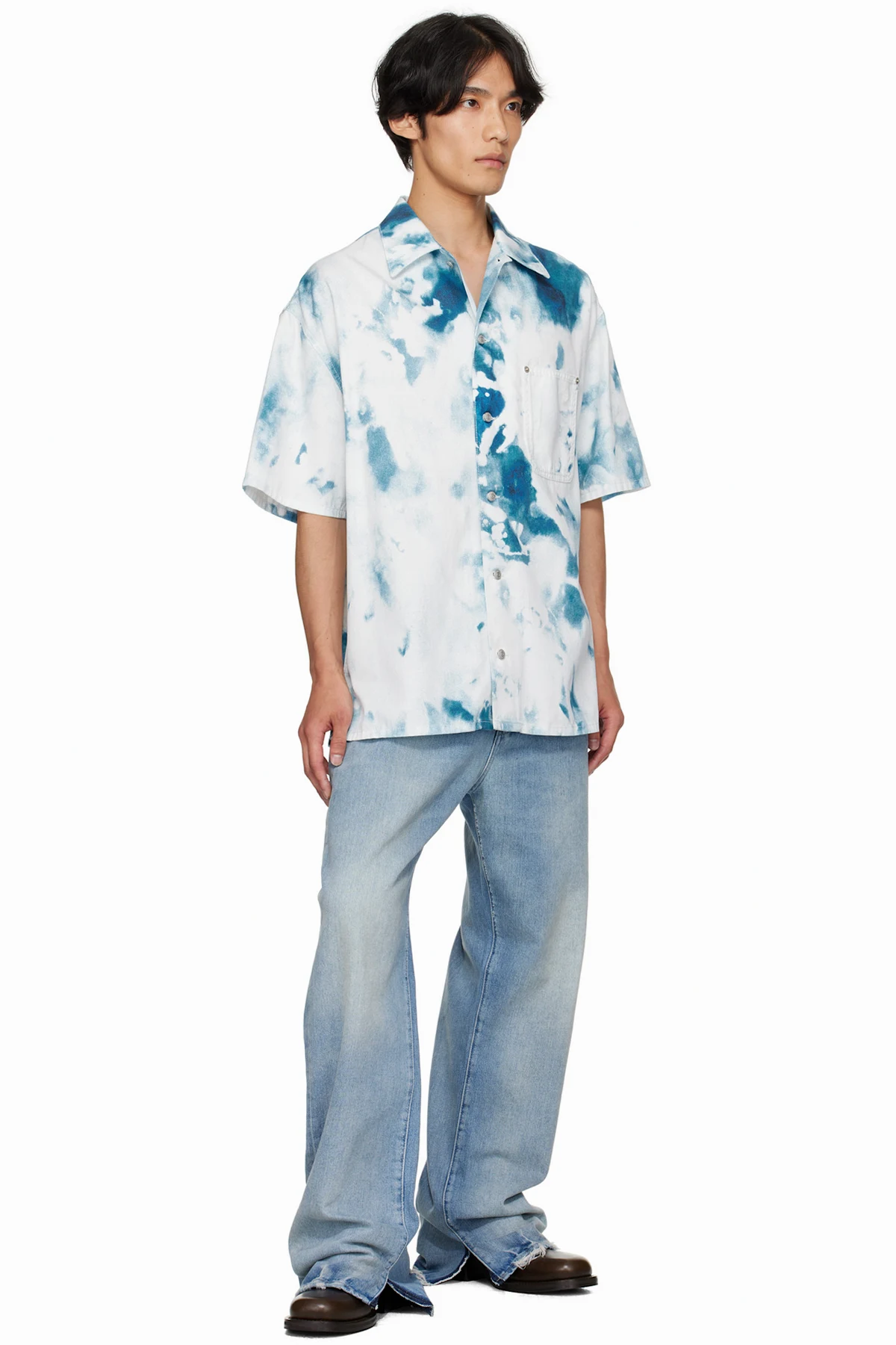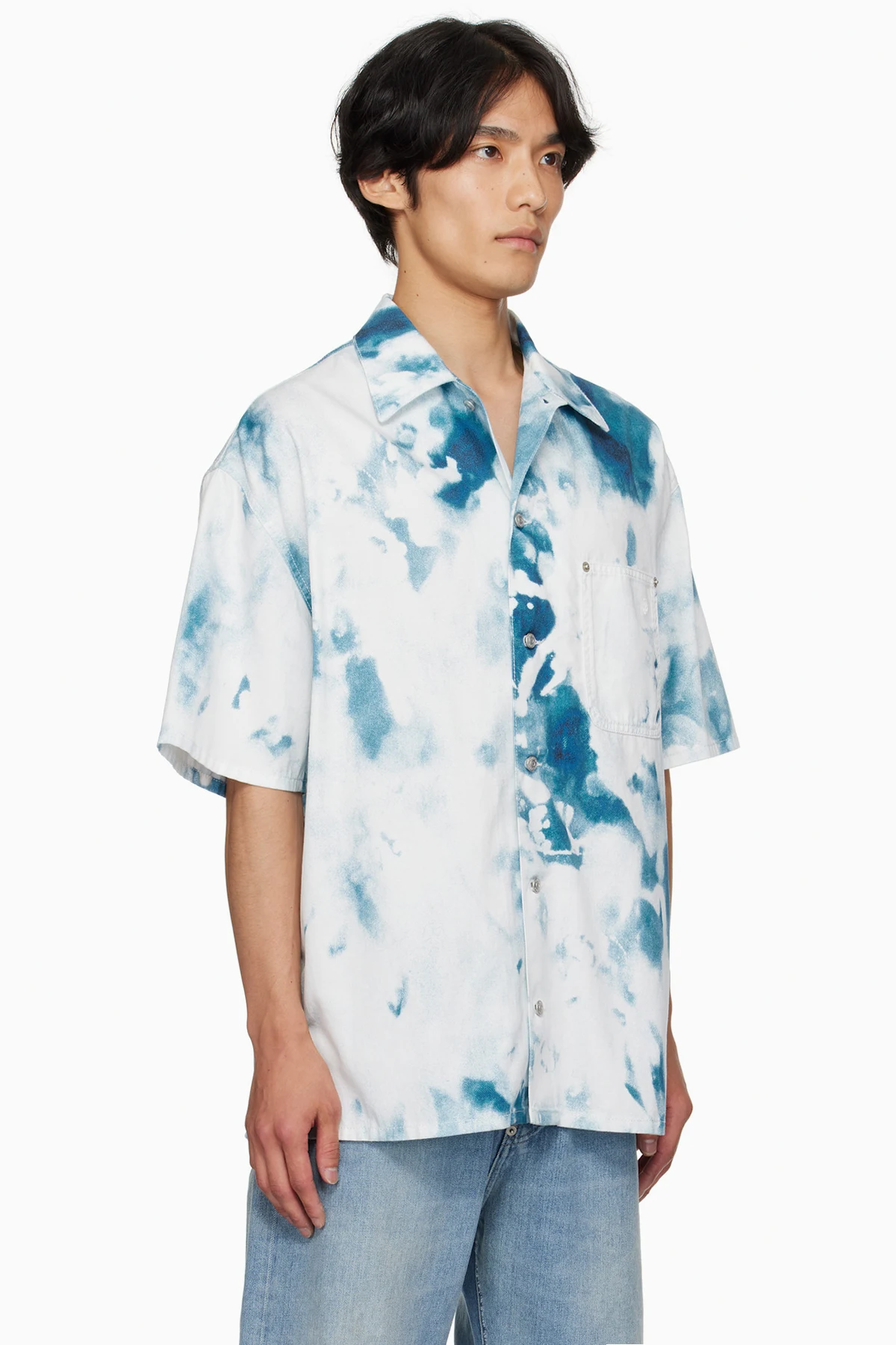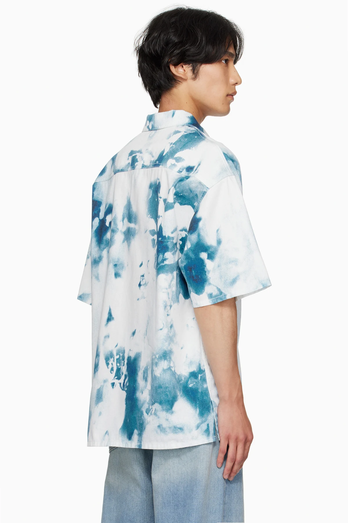 White & Blue Bleach Print Shirt