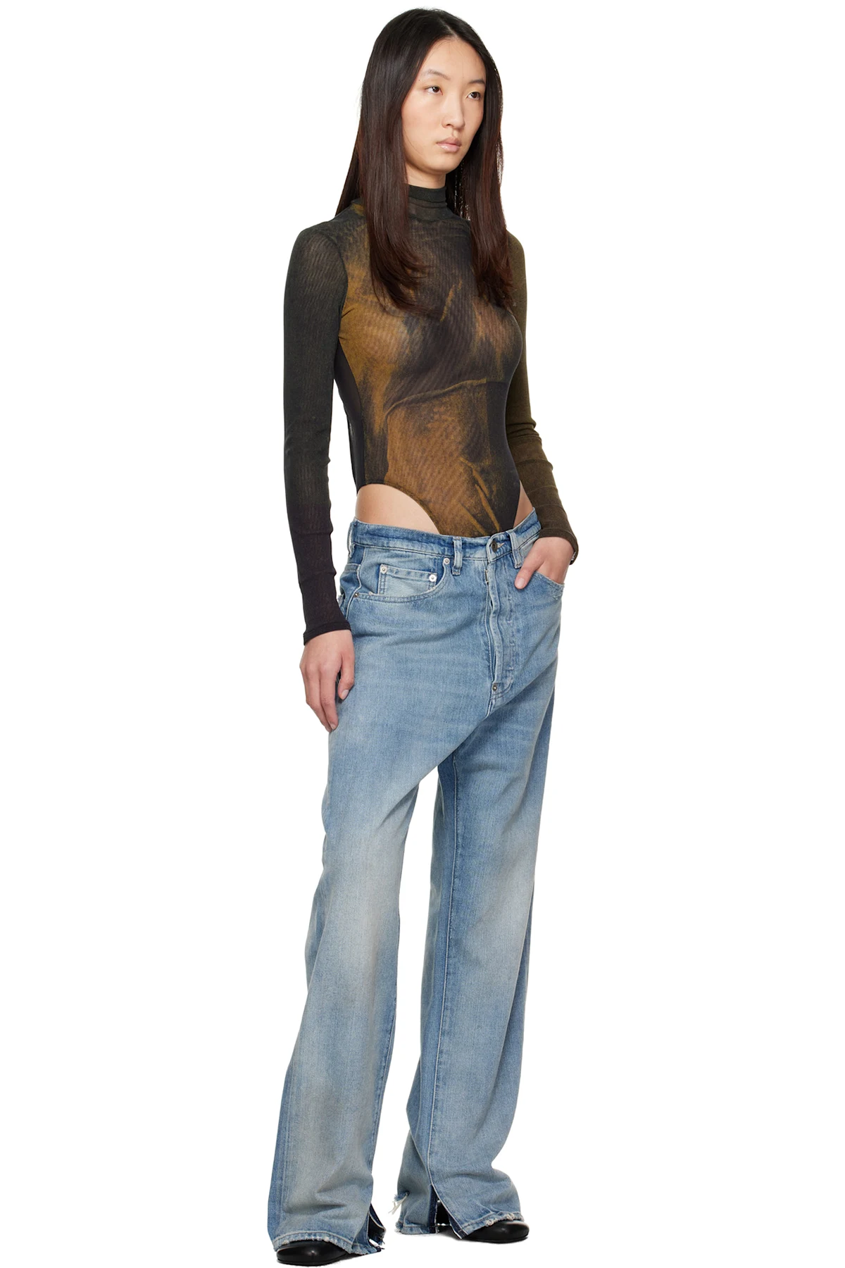 Nylon mesh bodysuit. Graphic printed throughout.