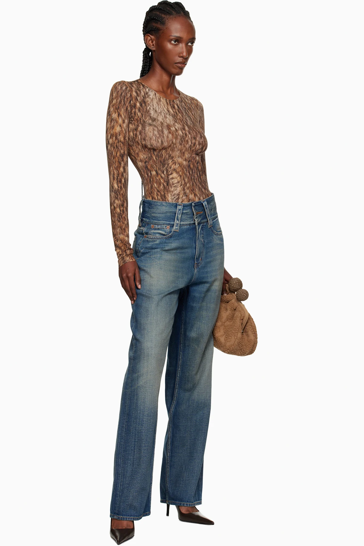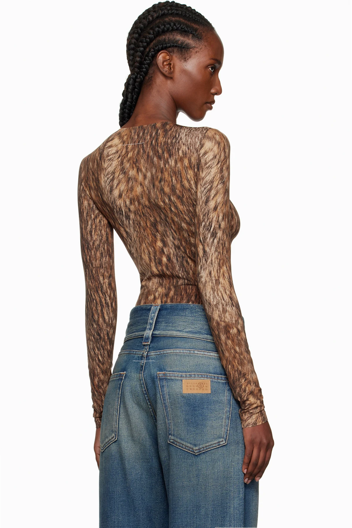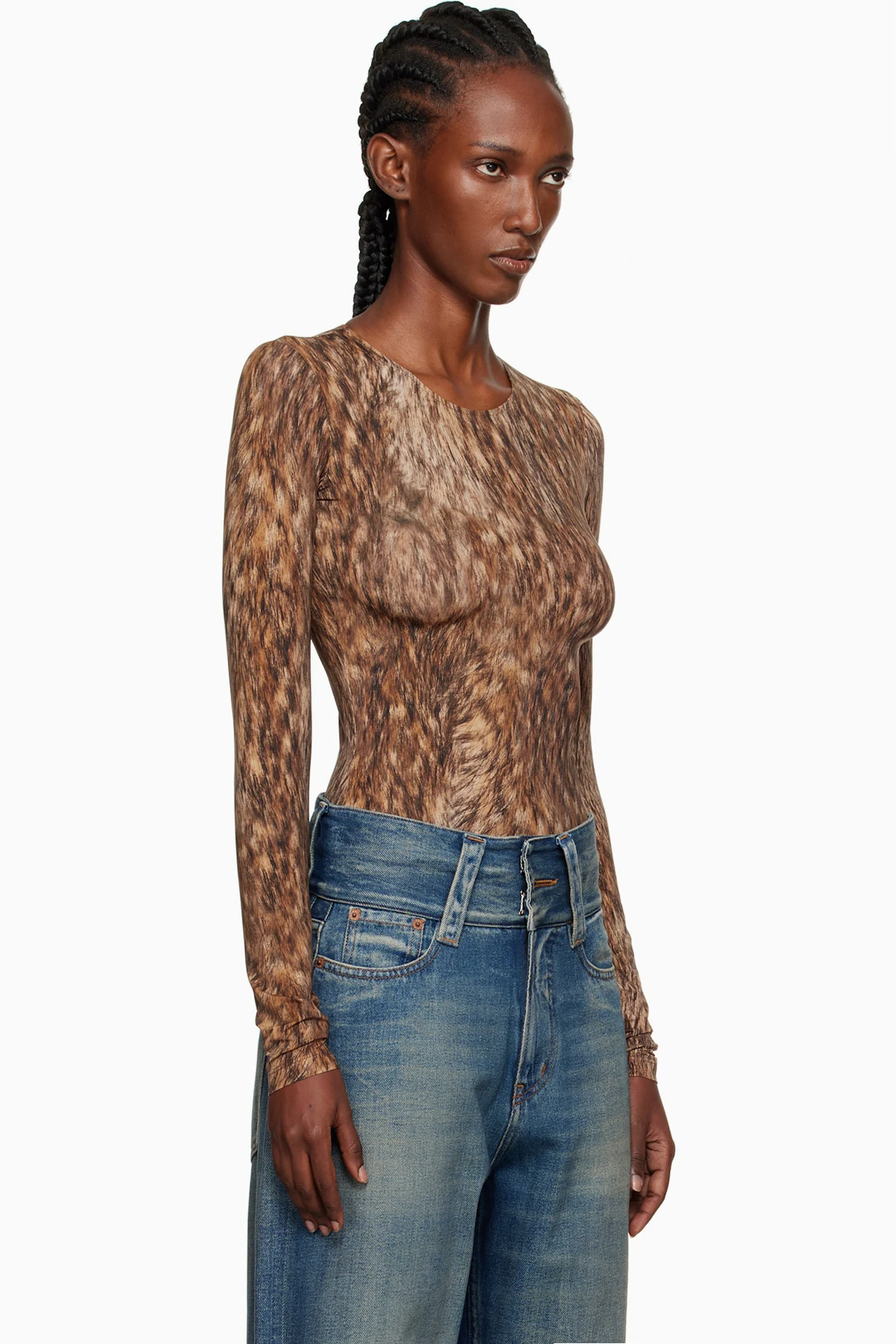 Brown Printed Jersey Bodysuit