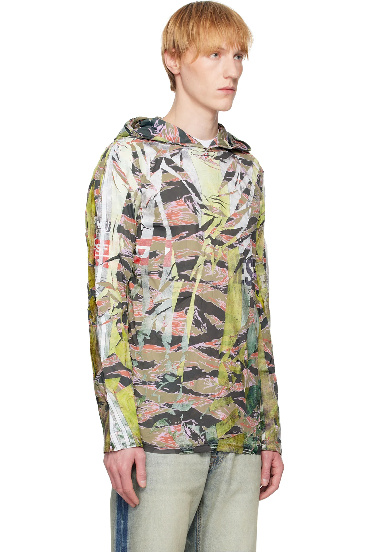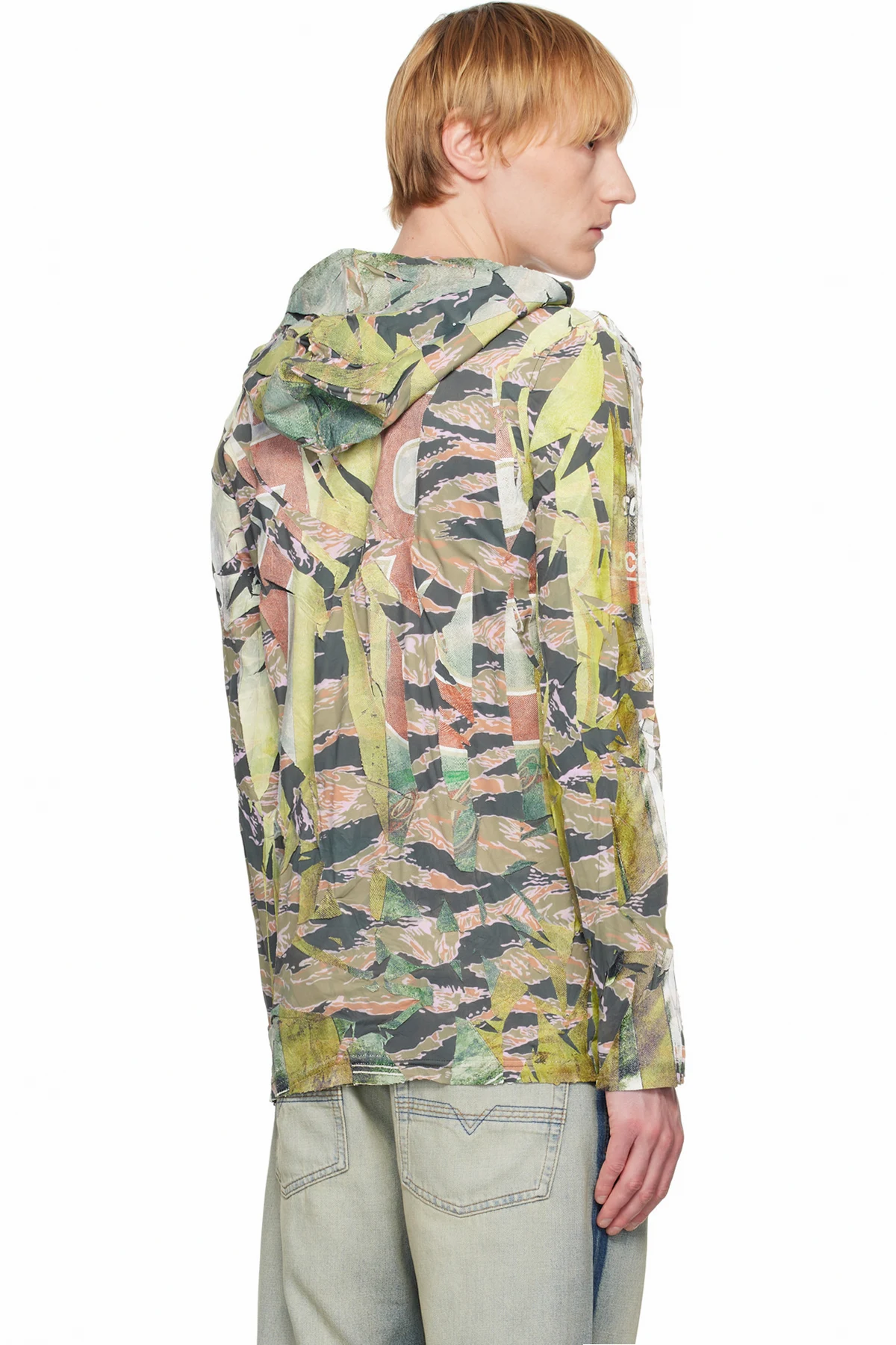 Cracked coated stretch nylon jersey hoodie.