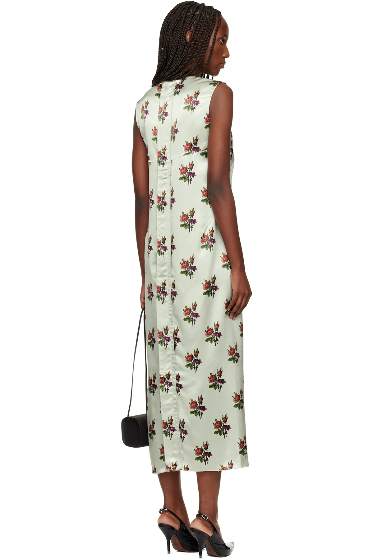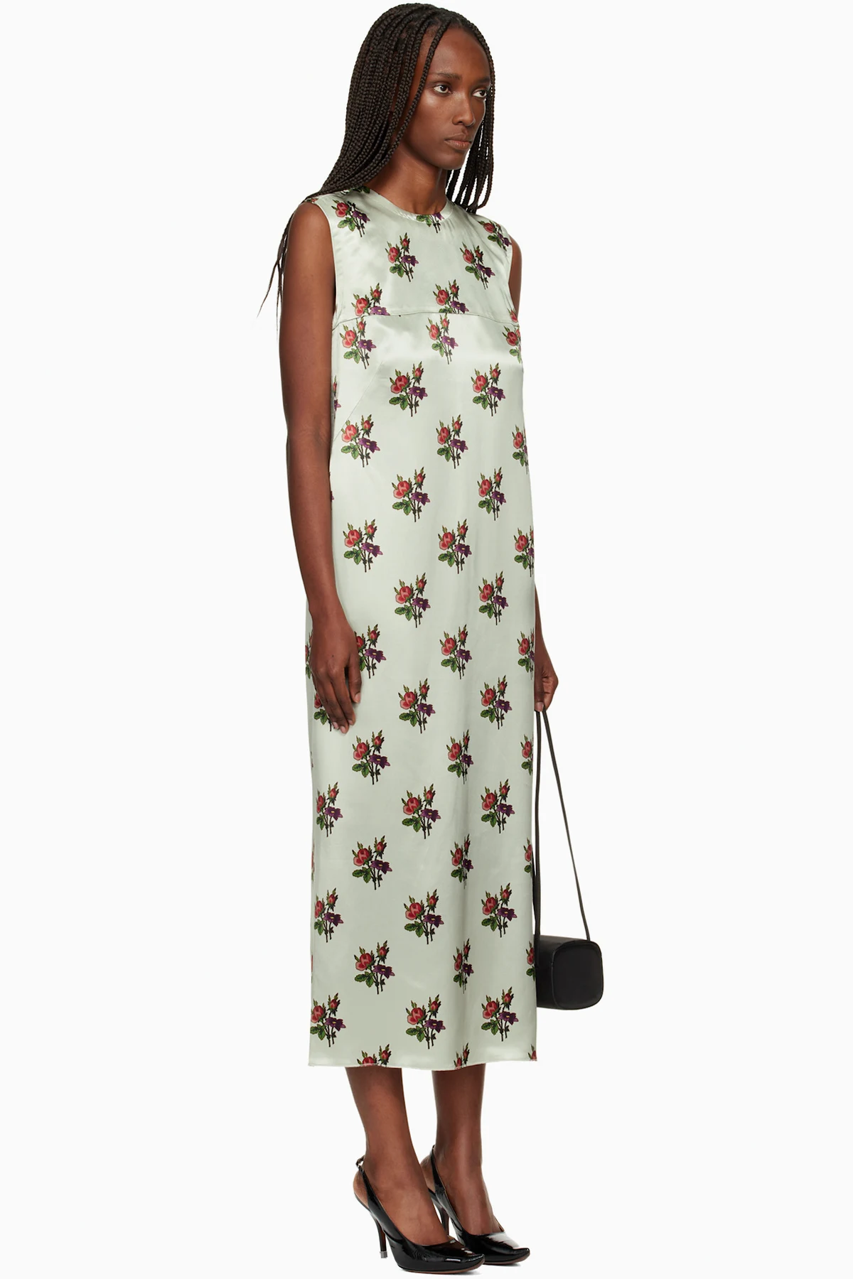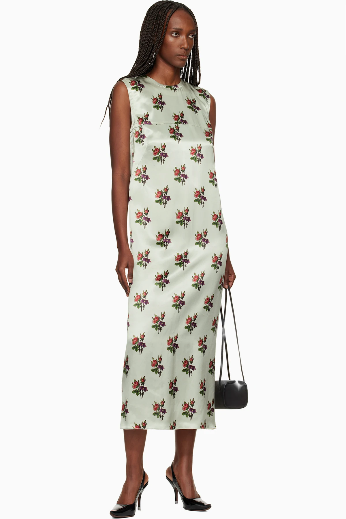 Green Floral Satin Shift Maxi Dress