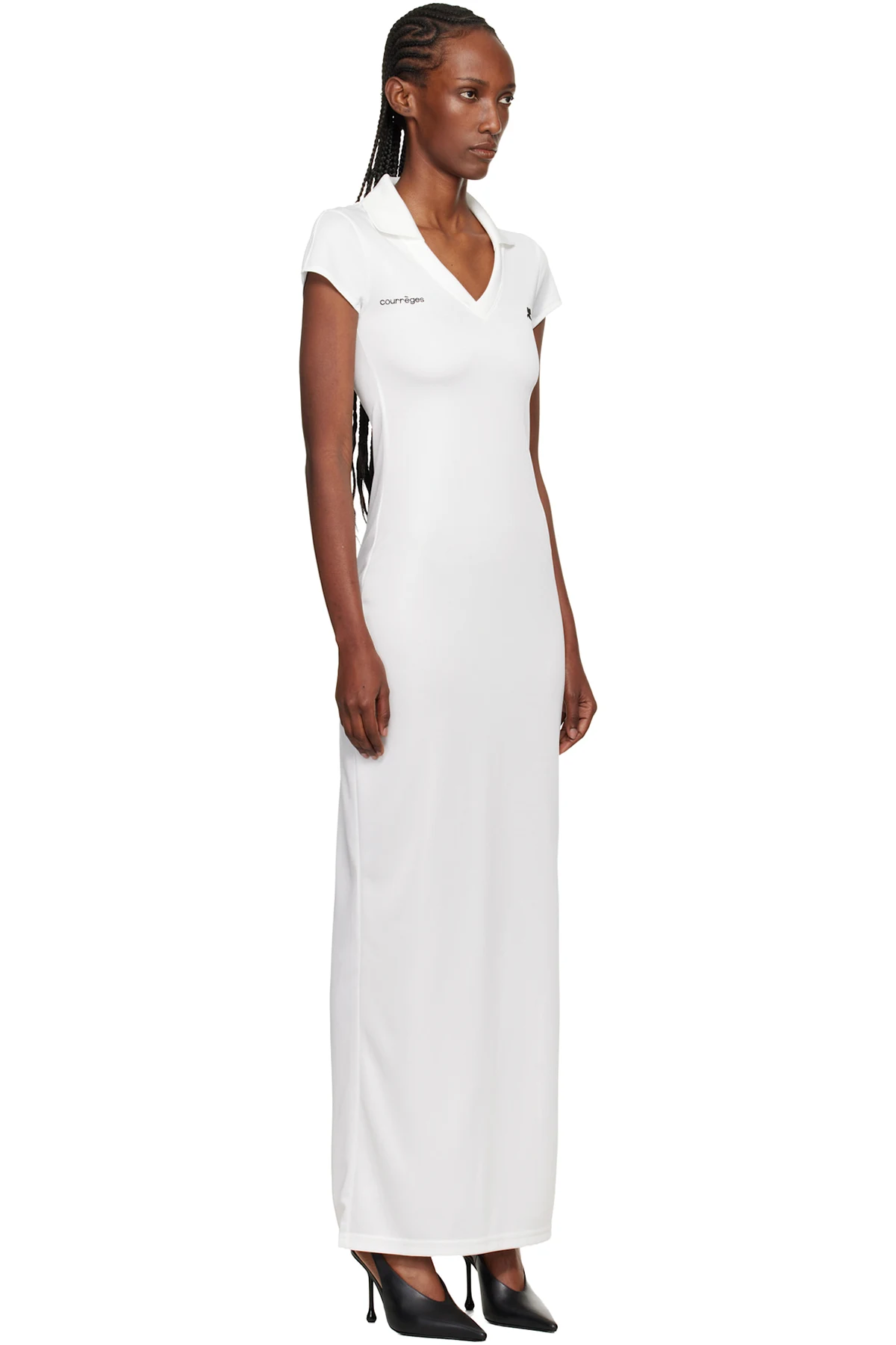 Semi-sheer piqué maxi dress.